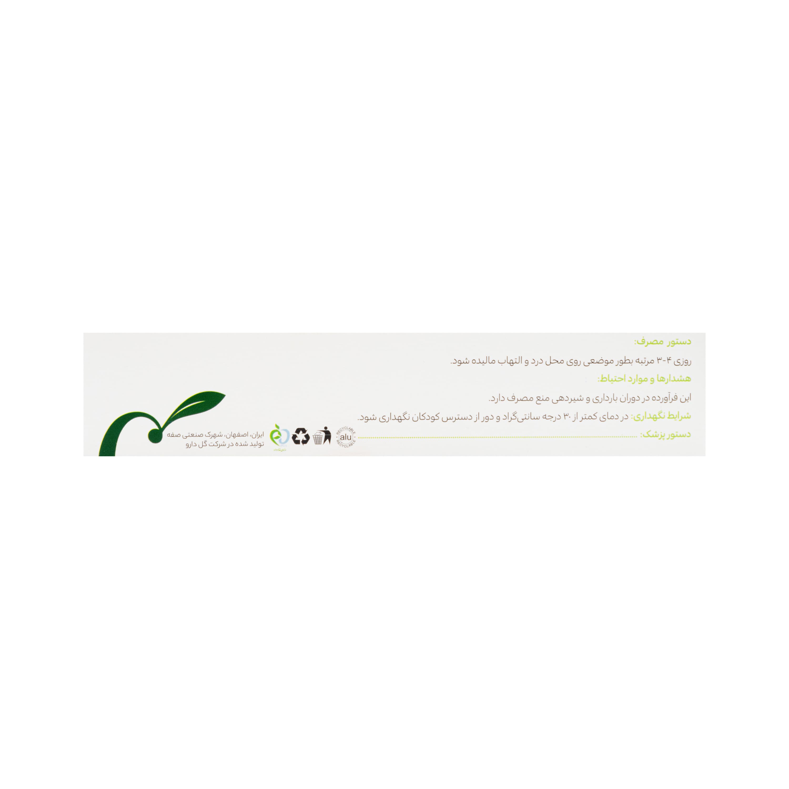 روزی ۴-۳ مرتبه بطور موضعی روی محل درد و التهاب مالیده شود.