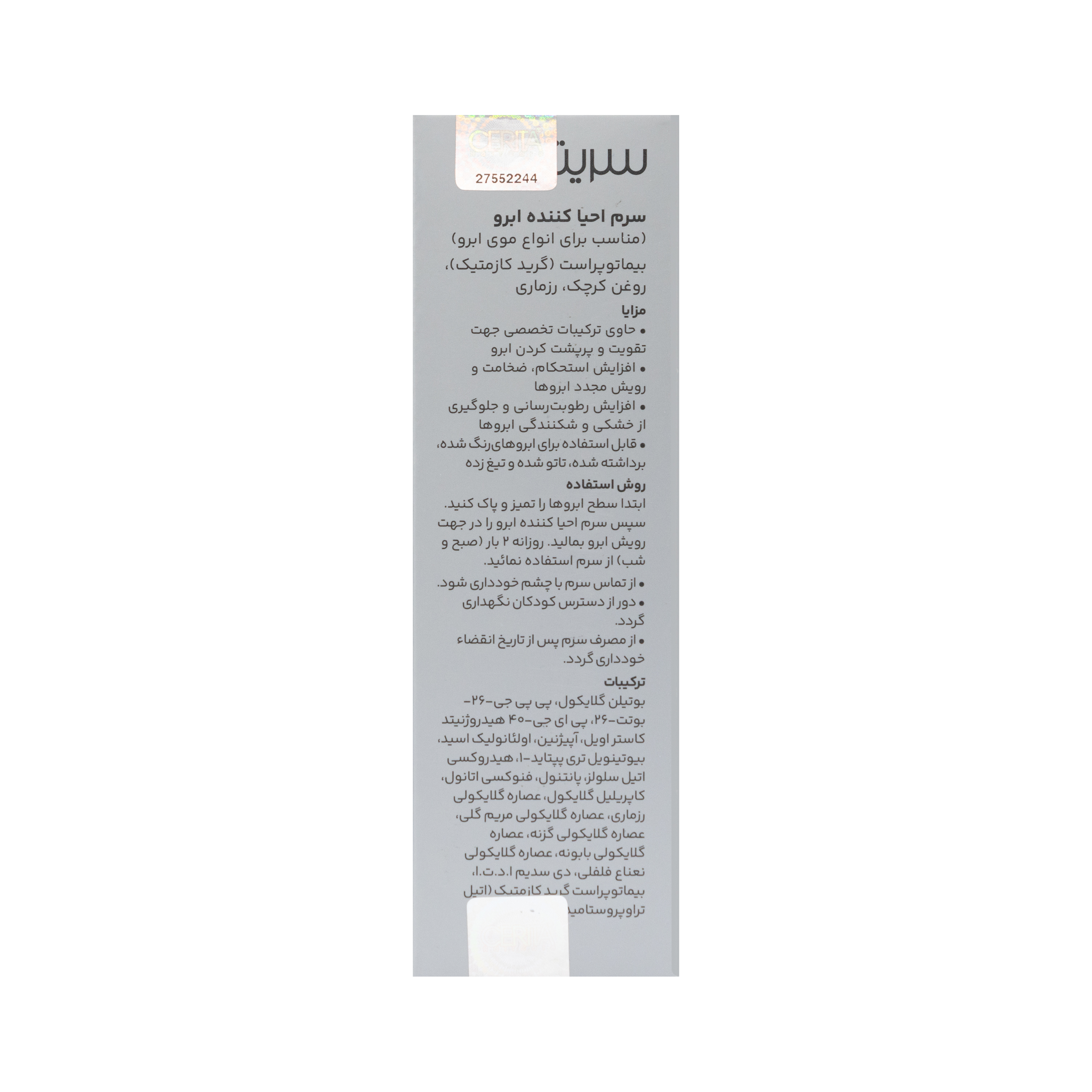 مواد تشکیلدهنده سرم ابرو سریتا