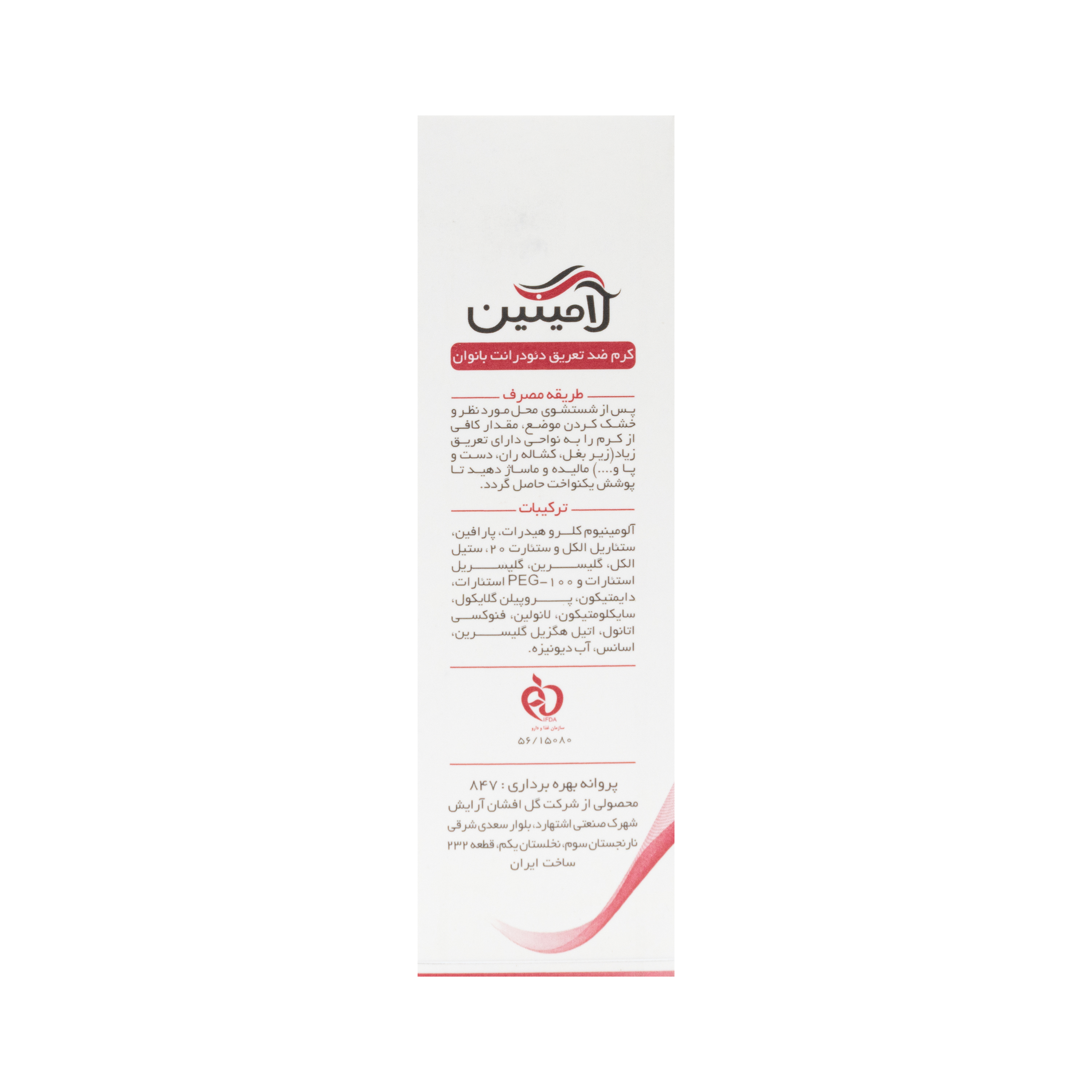 - حاوی آلومینیوم کلرو هیدرات با خاصیت ضد تعریق