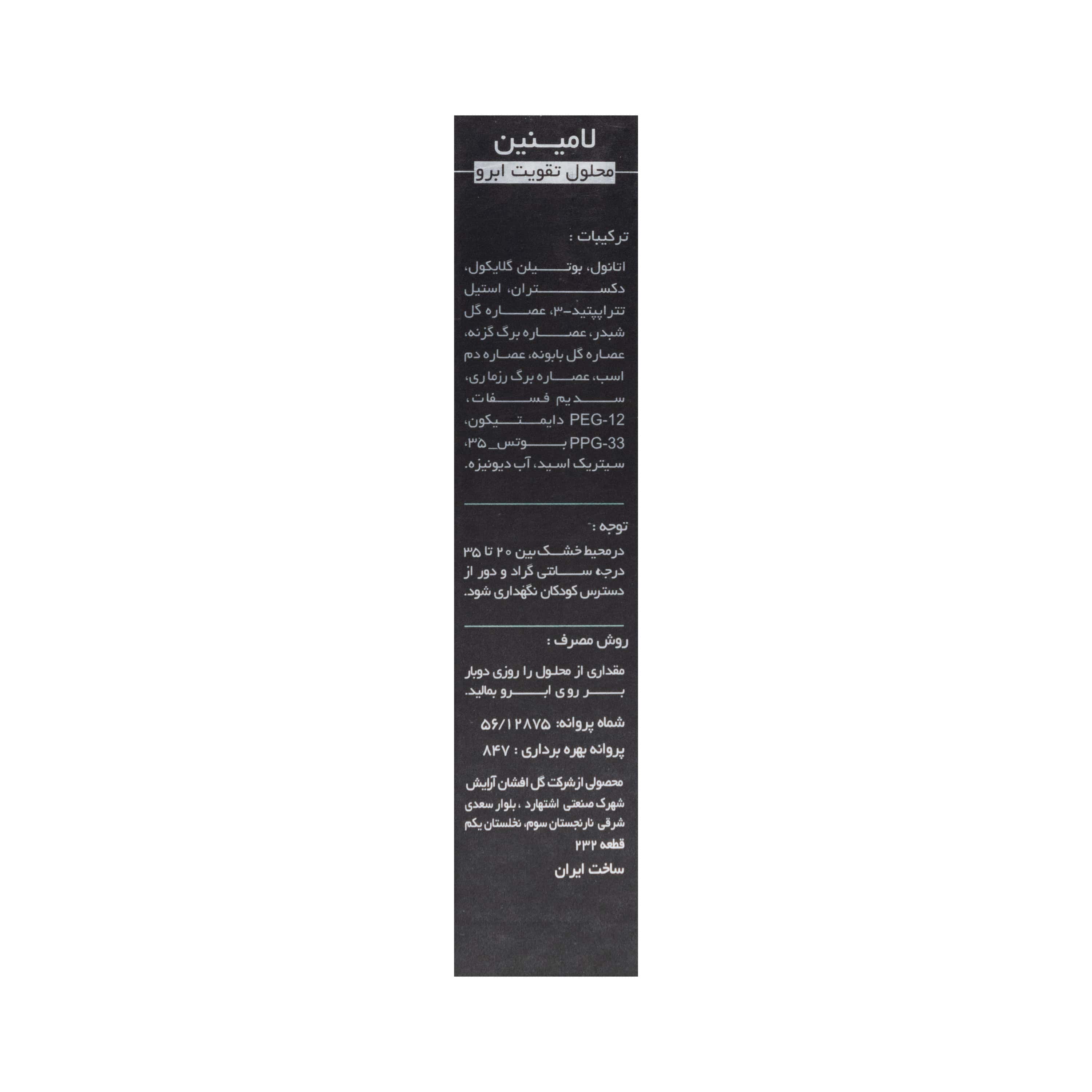ابروهای خوش فرم و پر حجم در زیبایی و جذابیت چهره نقش بسیار مهمی دارند. در صورت ضعیف شدن ریشه ابرو و ریزش آنها حتی به مقدار کم، باعث ایجاد ظاهری نامطلوب شده و مهمتر از آن رشد مجدد آنها به مراتب دشوارتر از رویش مجدد موی سر می باشد. محلول تقویت و رشد ابرو لامینین حاوی ترکیبات گیاهی فوق العاده موثر در تقویت نمودن ریشه ابرو و رشد آن نظیر رزماری و گزنه و همچنین ماده موثره کپکسیل می باشد.