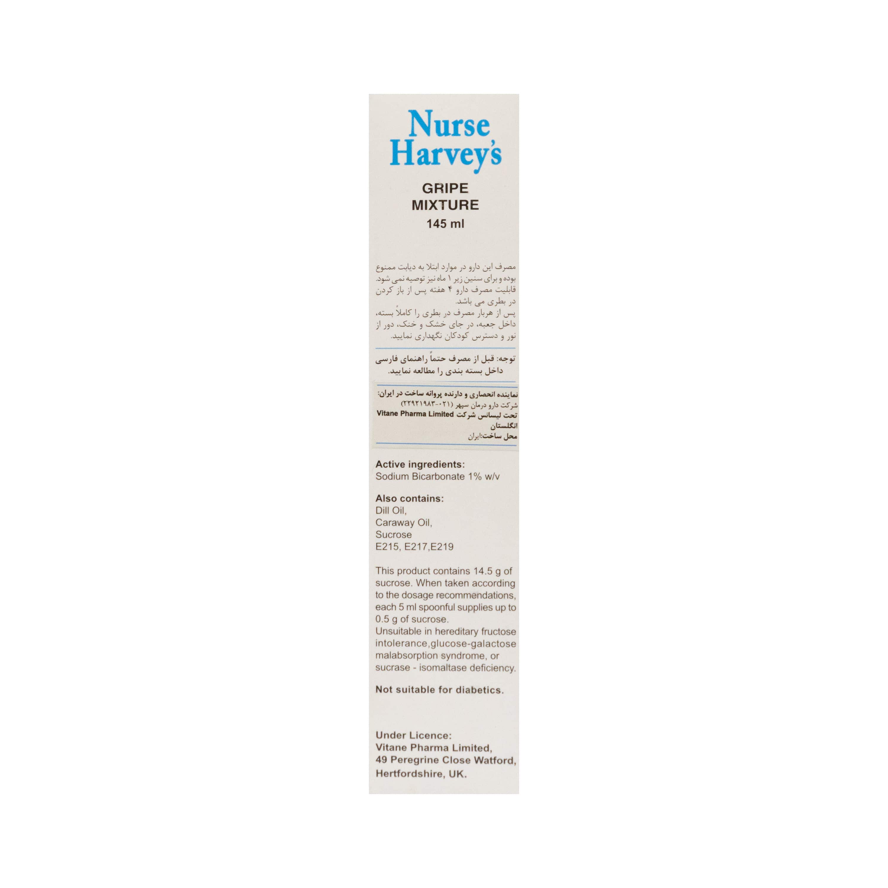 شربت گریپ میکسچر خارجی نرس هارویز محصولی از شرکت انگلستان است که بدون ایجاد هیچ عوارضی، دل درد نوزاد شما را برطرف کرده و از سوء هاضمه کودک نیز جلوگیری میکند.