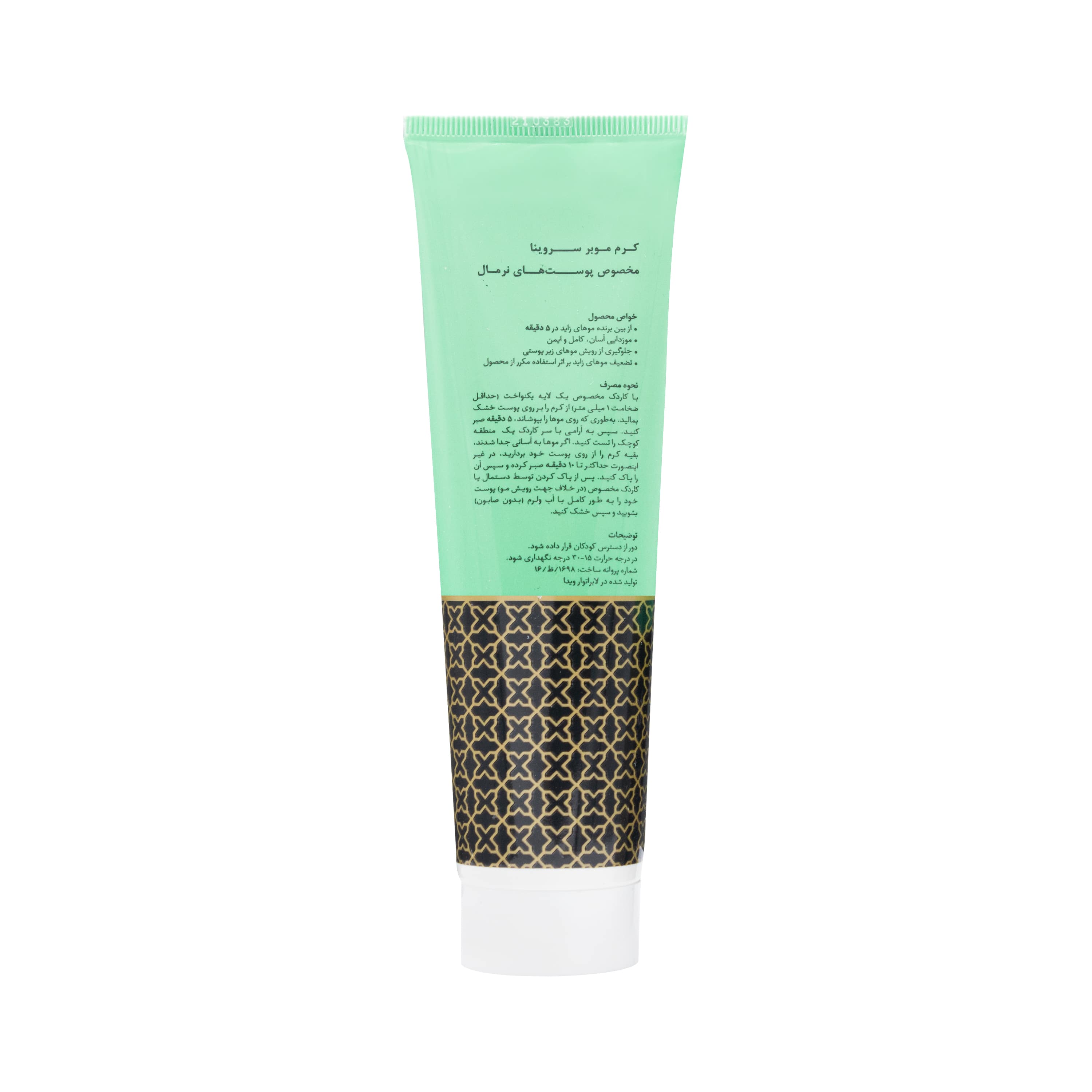 شرکت سروش طراوت طبیعت کرمی برای رفع این دغدغه به نام کرم موبر مخصوص پوست معمولی سروینا را تهیه و عرضه نموده است. این کرم تسکین دهنده و ضدالتهاب بوده و خاصیت ضد اثرات مضر رادیکال های آزاد و آنتی اکسیدان، رفع خشکی و نرم کننده پوست و آنتی سپتیک کننده و آنتی باکتریال دارد. این محصول برای از بین بردن موهای زاید در مدت 5 دقیقه، مو زدایی راحت وآسان، کامل و ایمن، پیشگیری از رویش موهای زیر پوستی، ضعیف کردن موهای زاید بر اثر استفاده مکرر از این محصول می باشد.