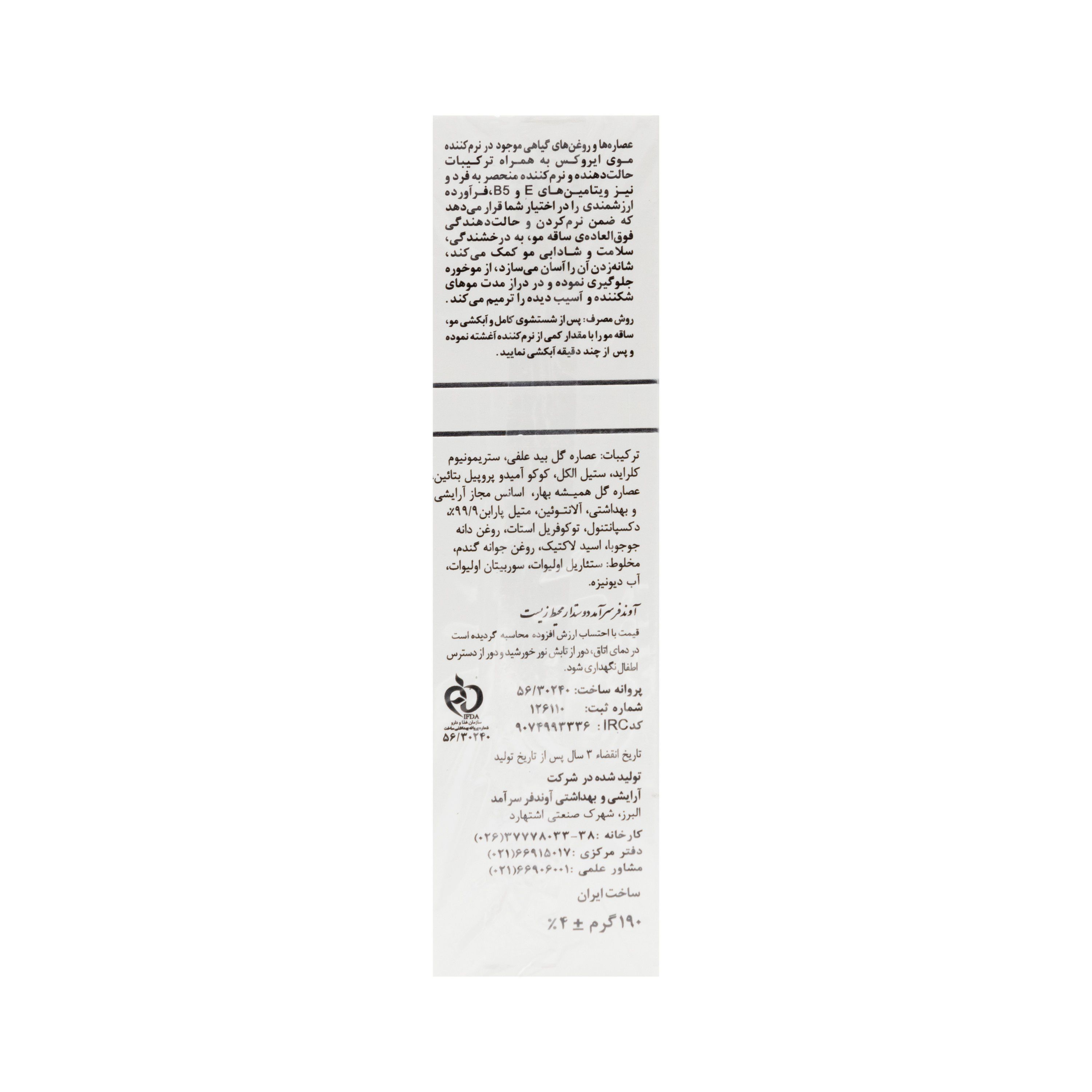 نرم کننده مو ایروکس حاوی ترکیبات ارزشمندی چون عصاره گل همیشه بهار، روغن جوجوبا و روغن جوانه گندم می باشد. این نرم کننده مو از زبری و بد حالت شدن مو ها جلوگیری کرده و مانع از ایجاد موخوره می شود.