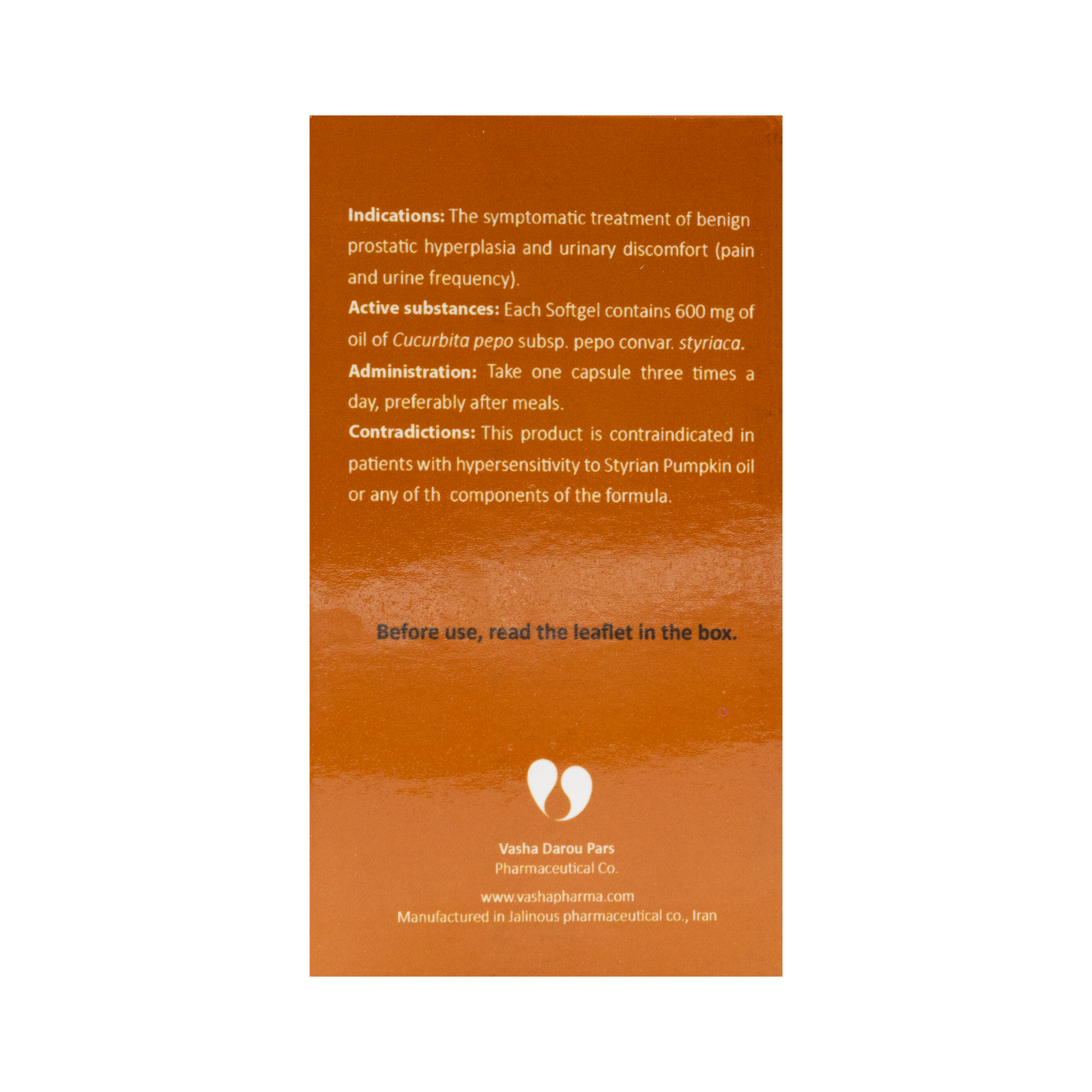 هر کپسول، حاوی 600 میلیگرم روغن کدوی طبی است.