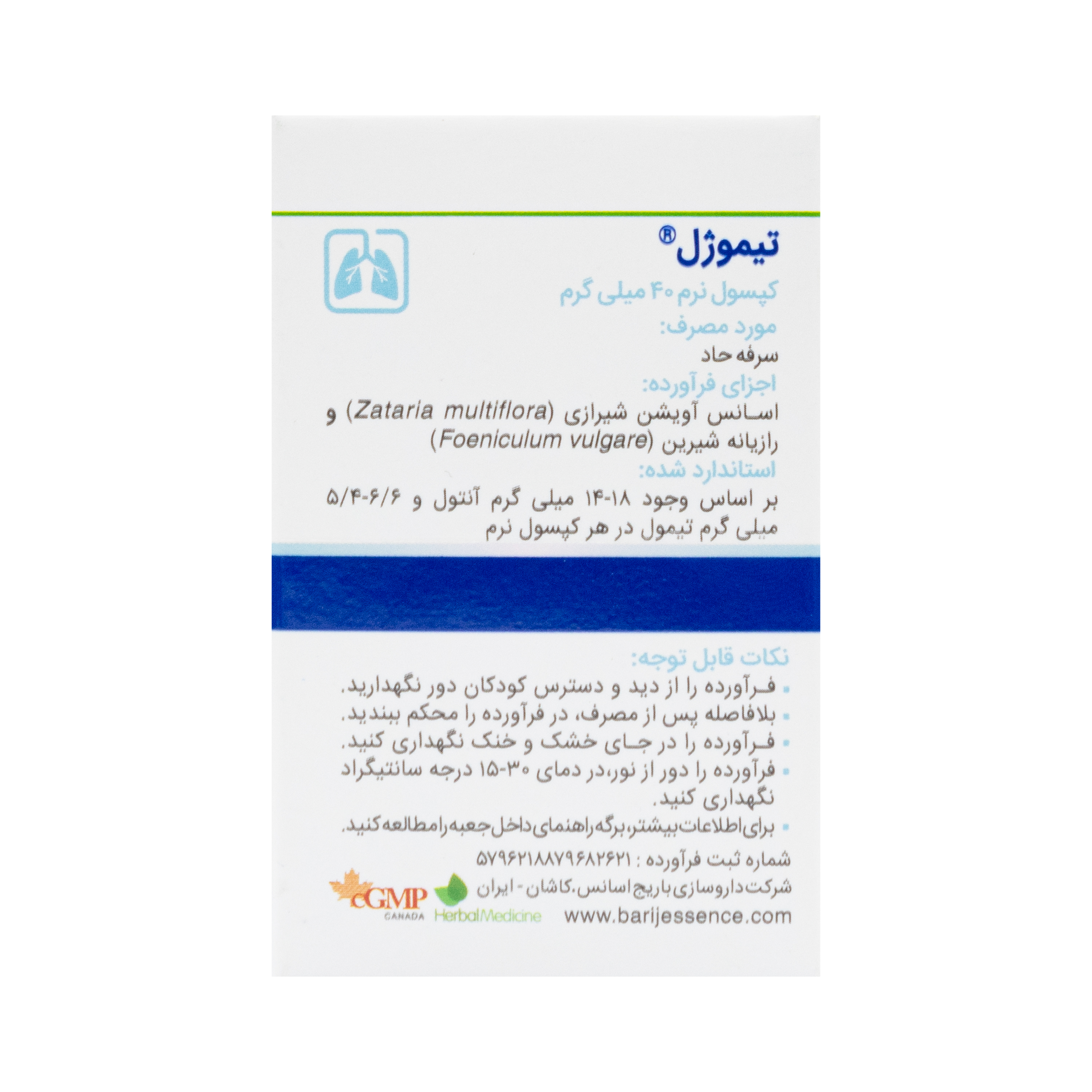 - ترکیبات کپسول گیاهی تیموژل باریج