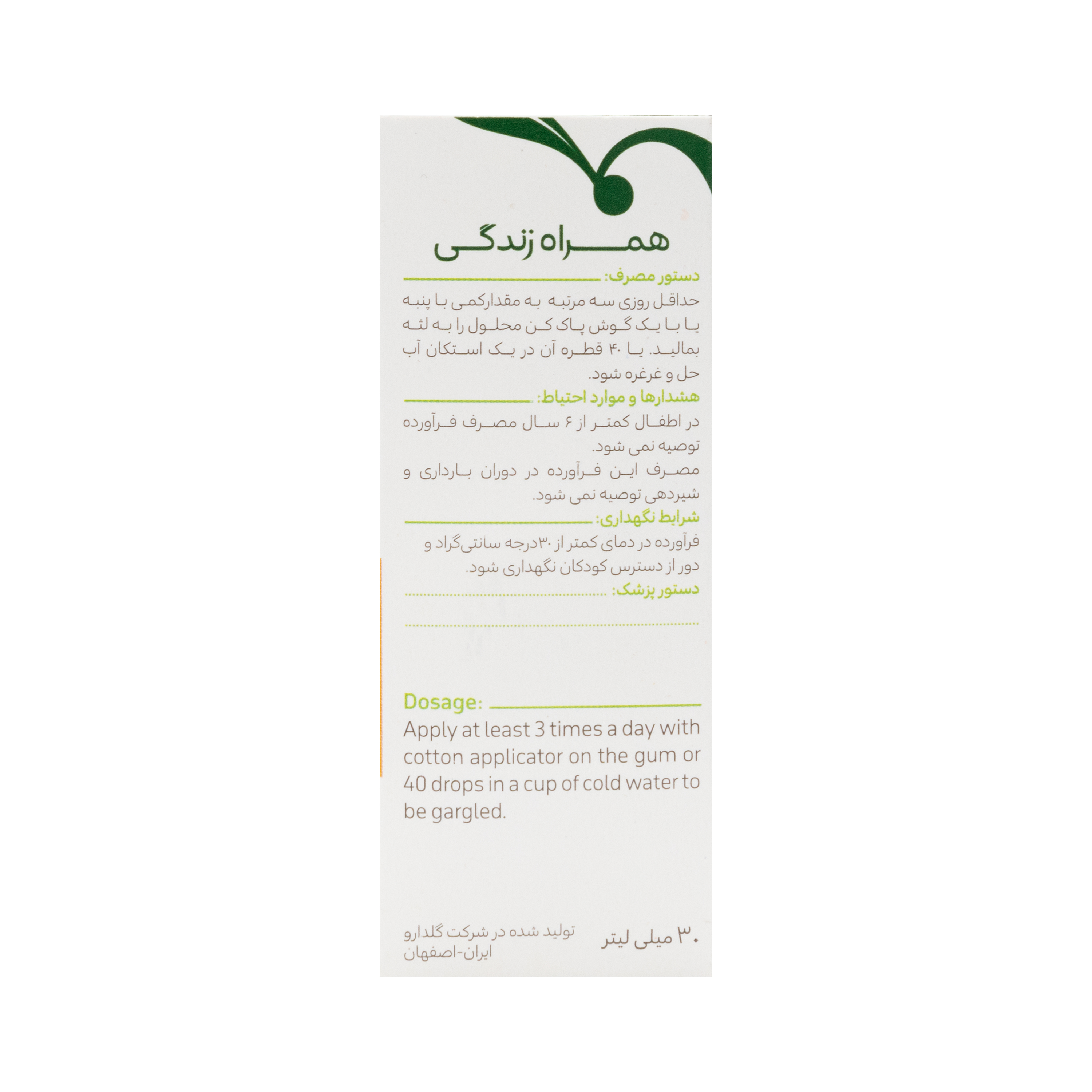 روزی سه مرتبه مقدار کمی از این محلول را روی پنبه یا گوش پاک کن ریخته و روی آفت یا محل آسیب دیده لثه بمالید.