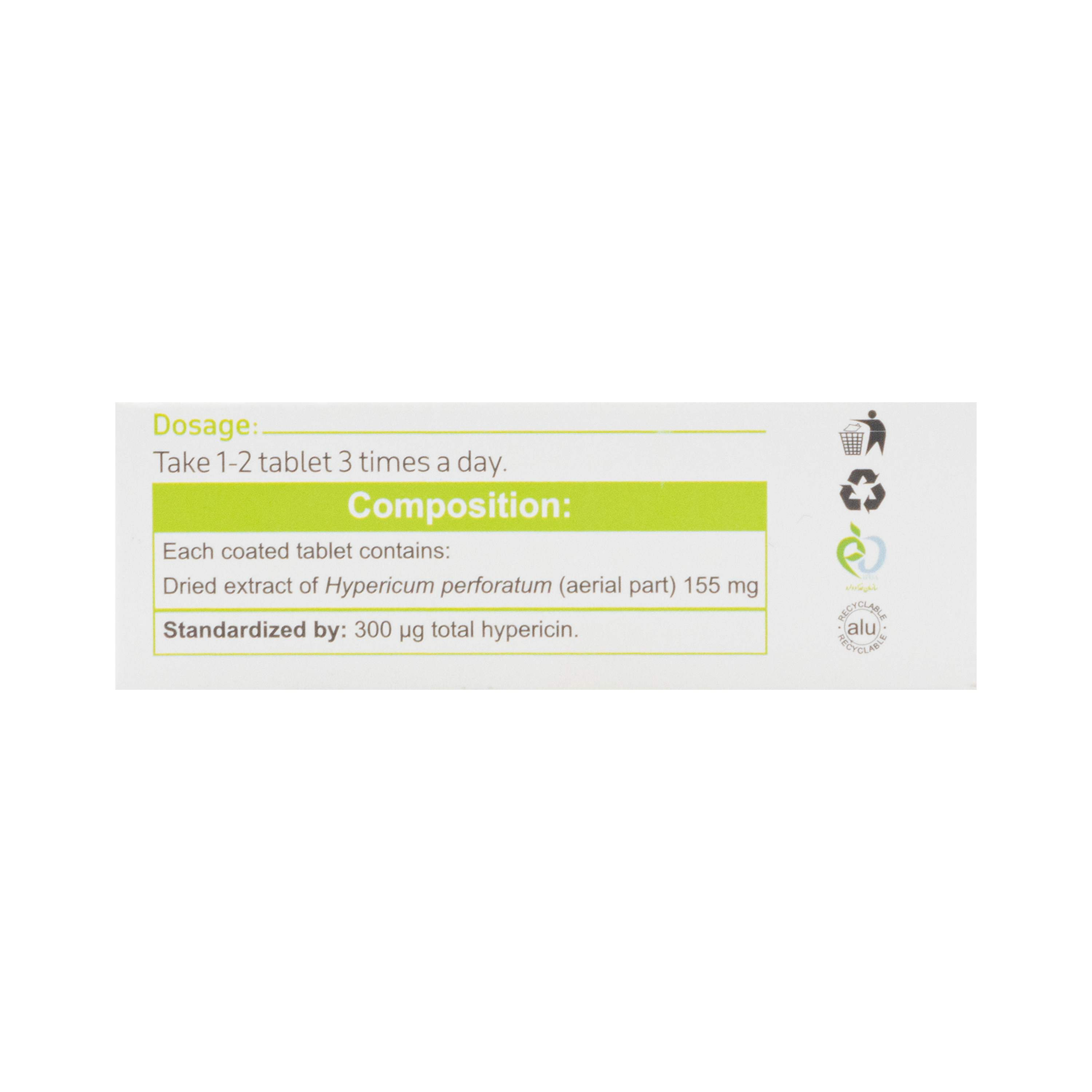 - هر فرص حاوی ۱۵۵ میلی گرم عصاره خشک گیاه علف چای یا هوفاریقون (Hypericum perforatum) می باشد.