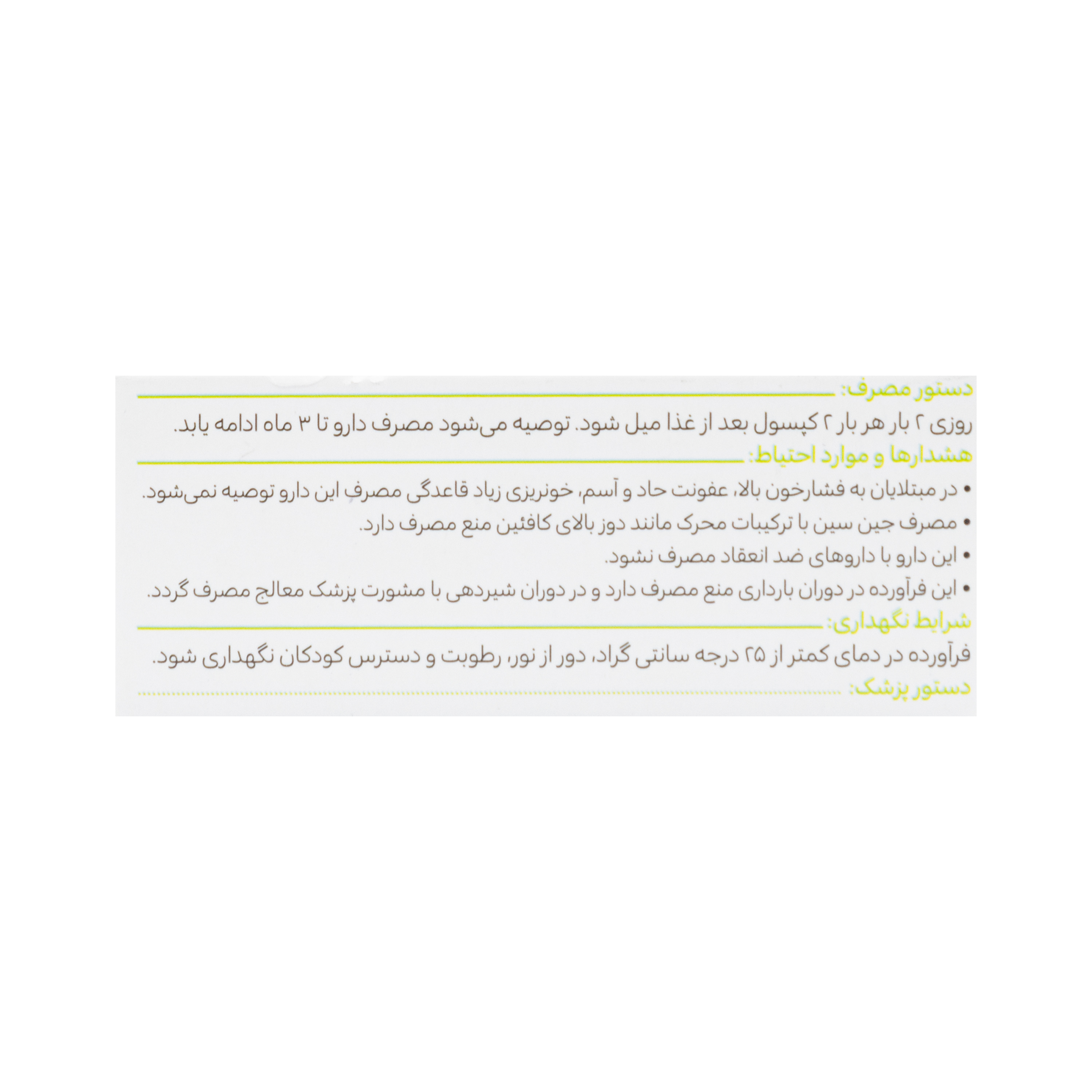 - در دوران شیردهی با مشورت پزشک معالج مصرف گردد.