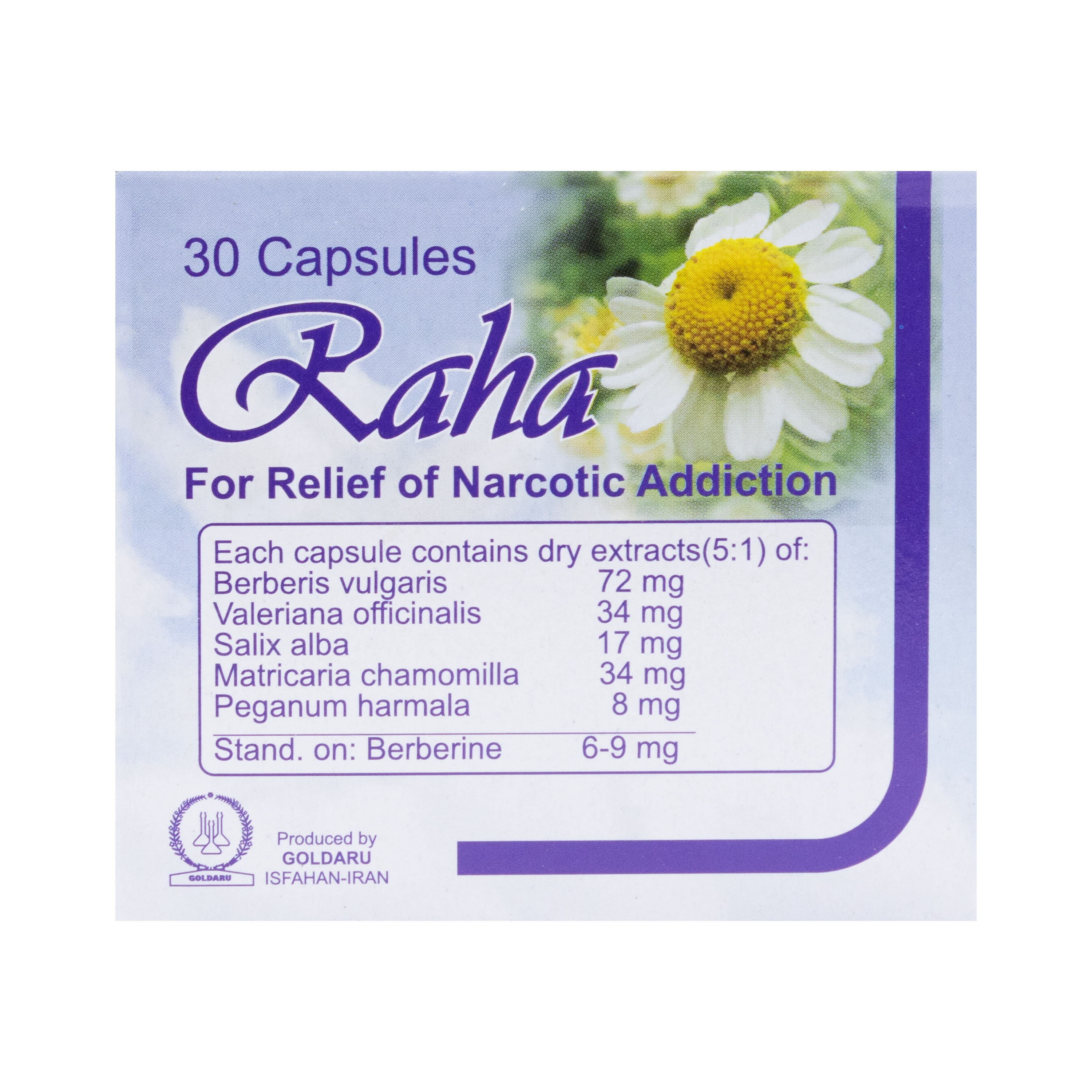 عصاره خشک ریشه زرشک، عصاره خشک سنبل الطیب، عصاره خشک بابونه، عصاره خشک بید، عصاره خشک اسفند استاندارد شده: برحسب ۹-۶ میلی گرم بربرین