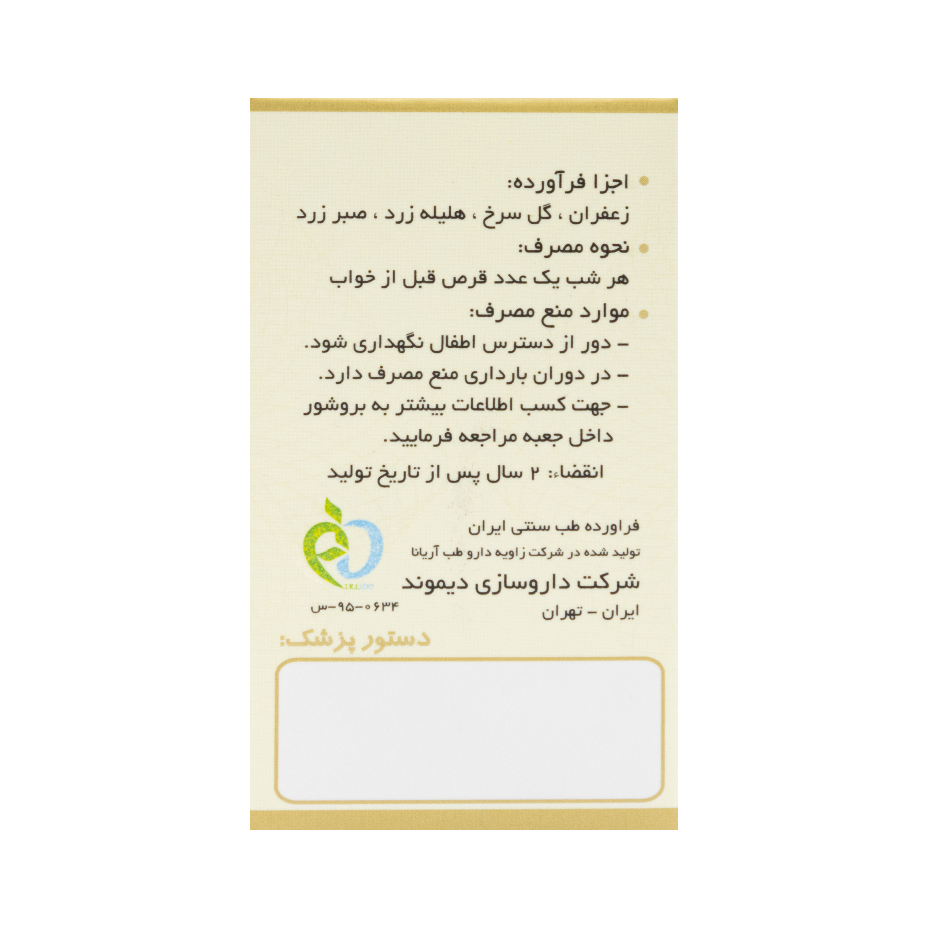 این قرص از ترکیب عصاره 4 گیاه آلوئه ورا، زعفران، هلیله زرد و گل سرخ تهیه شده است.