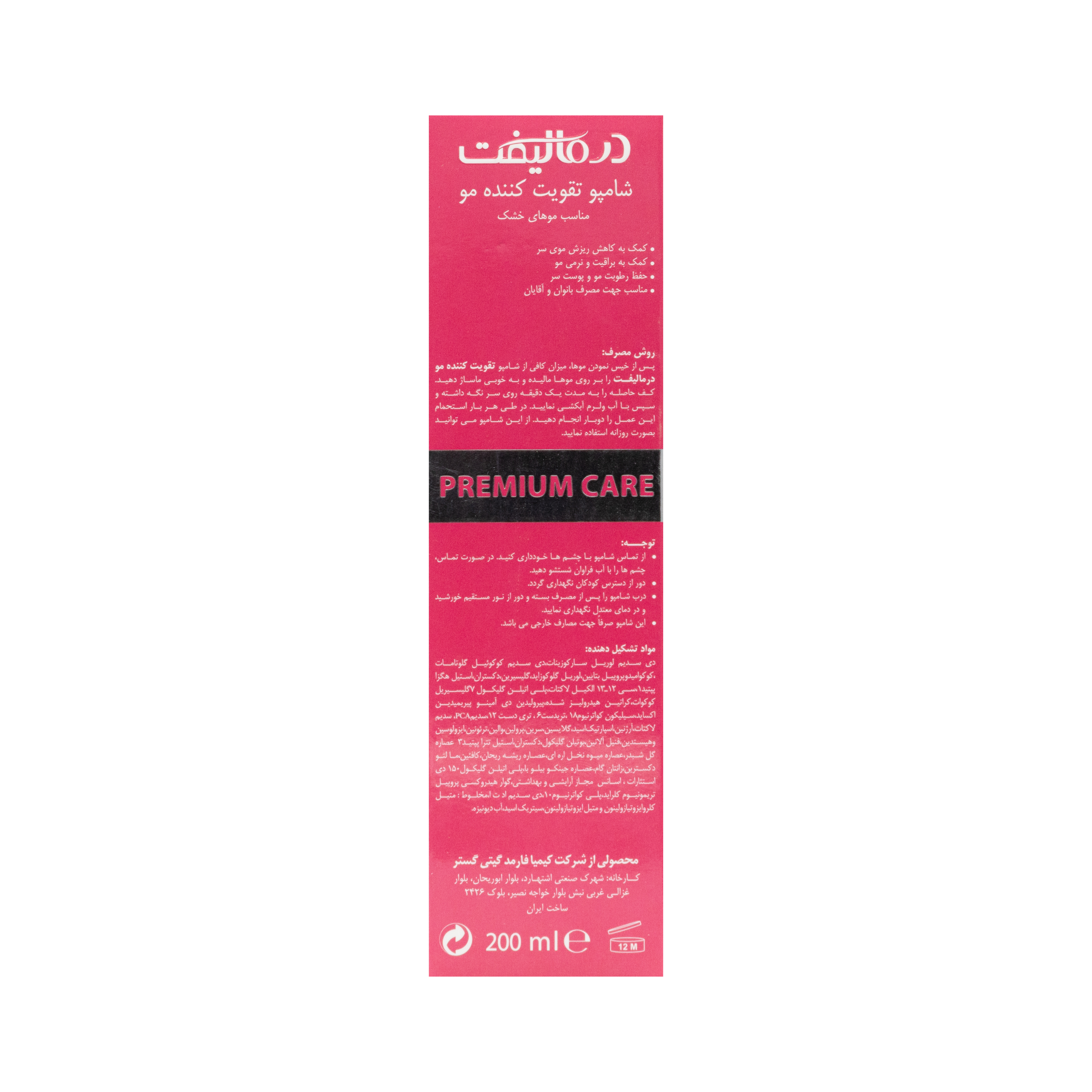داروخانه اینترنتی مفید طب به عنوان یک مرجع شناخته شده در عرضه محصولات بهداشتی و درمانی با کیفیت موجود در بازار، شامپو ضد ریزش و تقویت کننده مو های خشک درمالیفت را با قیمتی مناسبی و زمان ارسال سریع، در اختیار شما عزیزان قرار داده است. لذا میتوانید به راحتی آن را خریداری کنید و برای تقویت موهایتان استفاده نمایید.