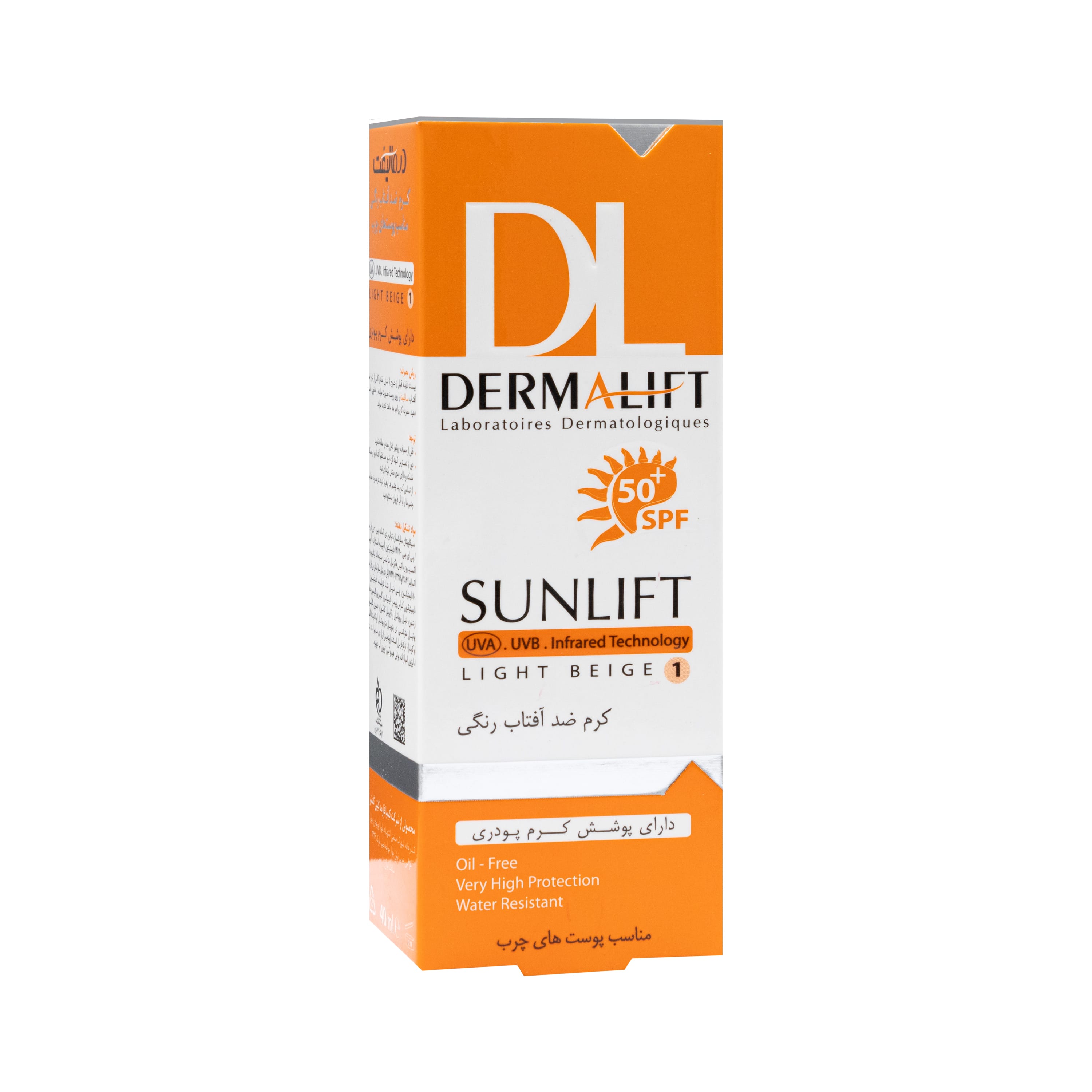 کرم ضد آفتاب SPF50 سانلیفت پوست چرب بژ روشن درمالیفت