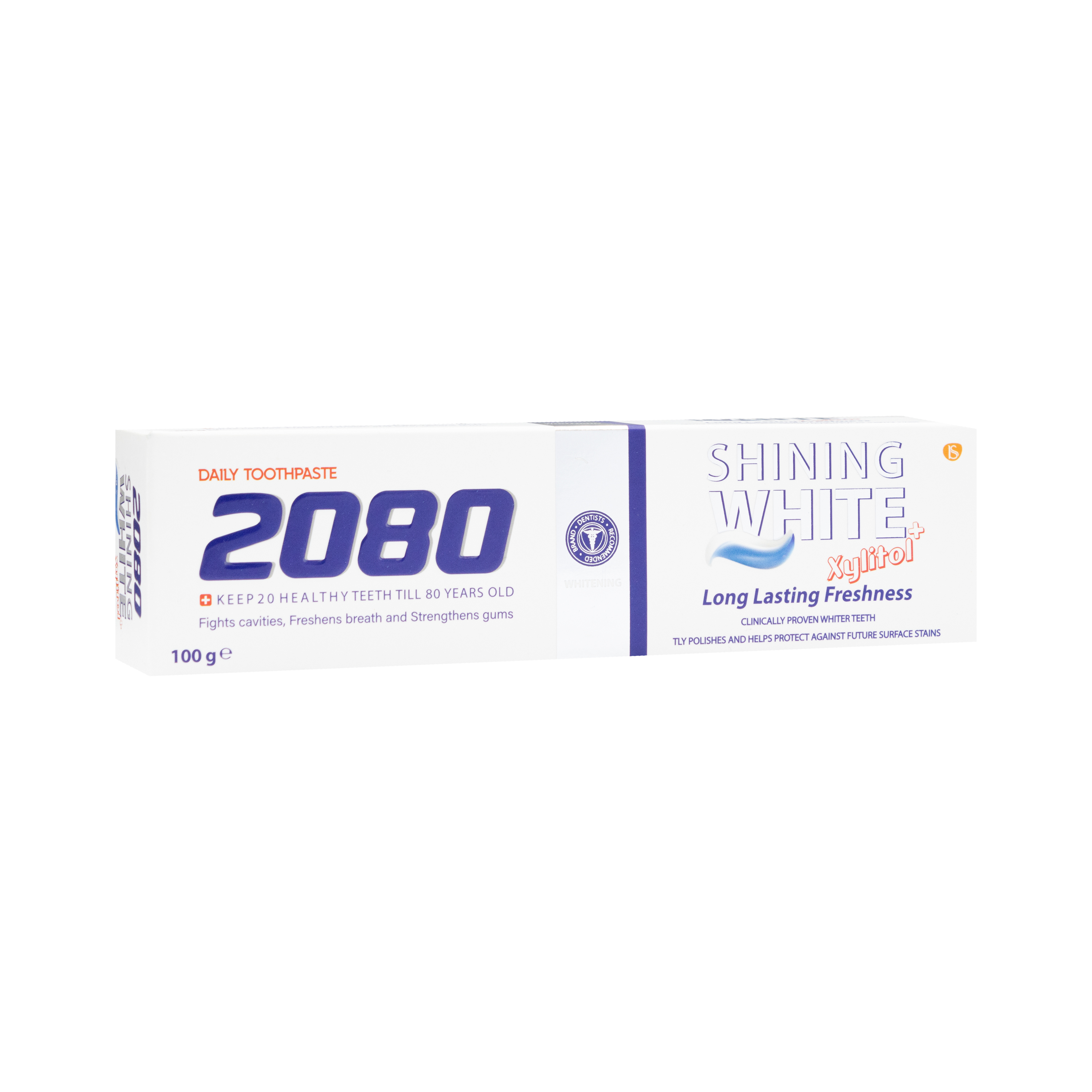 خمیر دندان شاینینگ وایت ۲۰۸۰ با دارا بودن سفید کننده در جرم زدایی و سفید شدن دندان ها بسیار موثر می باشد. در این محصول از ماده HAP (هیدروکسی آپاتاتید) استفاده شده است که از مواد تشکیل دهنده دندان می باشد و با استفاده مداوم در سوراخ های ریز سطح دندان رسوخ کرده و از پوسیدگی دندان جلوگیری می نماید و از ایجاد پلاک و جرم بر روی دندان محافظ کرده تا از خرابی های احتمالی جلوگیری نماید.