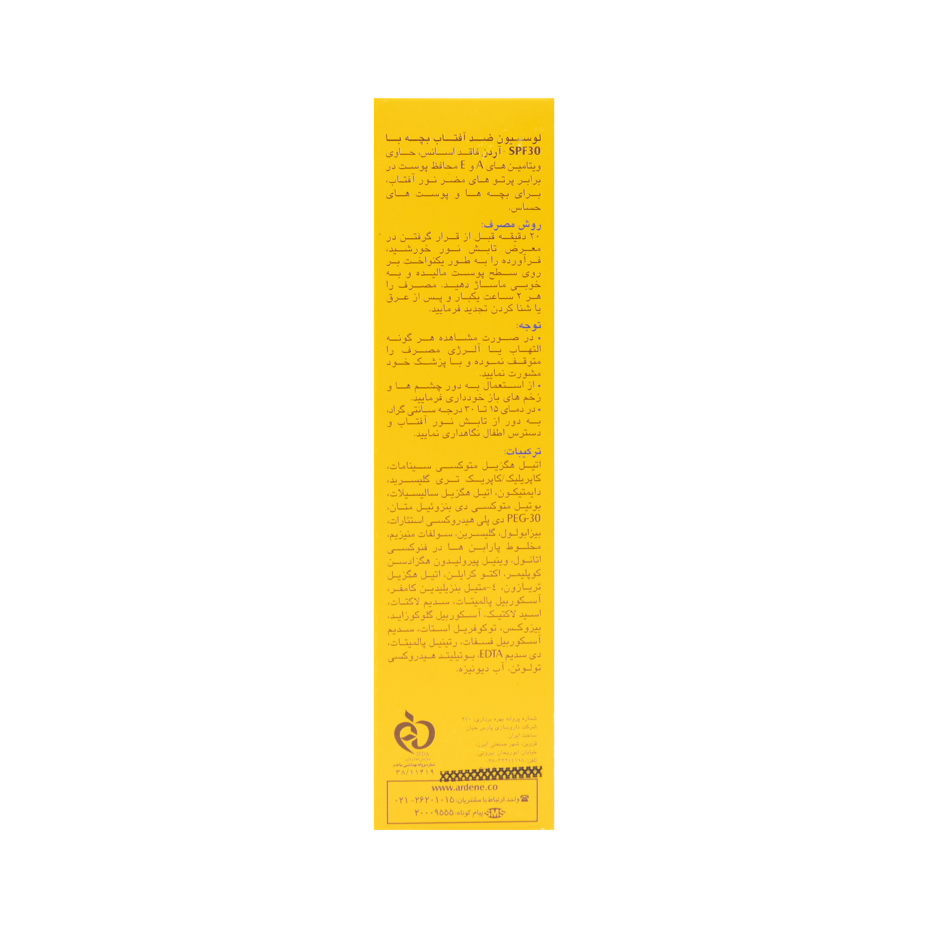 لوسیون ضد آفتاب بچه SPF30 بیرنگ 75 گرمی آردن