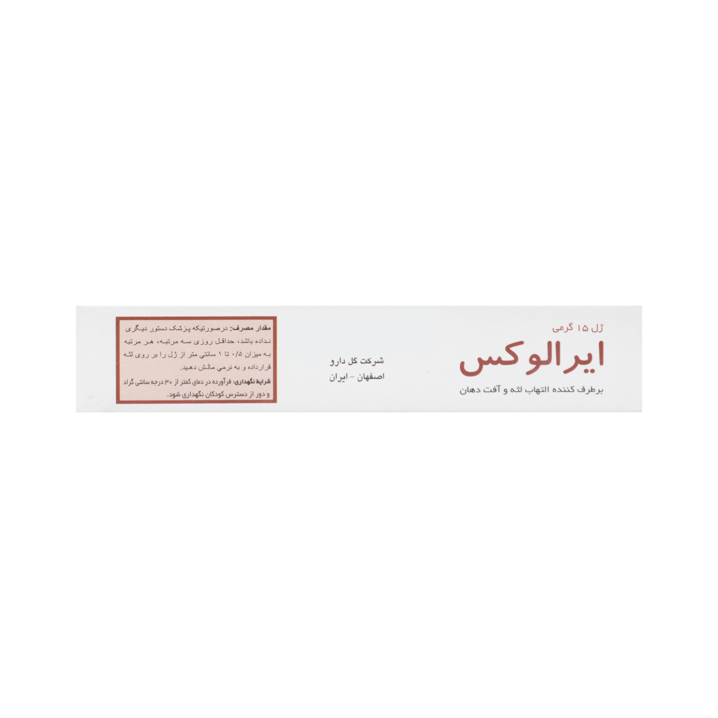 ژل ایرالوکس: حداقل روزی 3 مرتبه هر مرتبه به میزان 0.5 تا یک سانتی متر از ژل را بر روی لثه قرار داده و به نرمی مالش دهید.