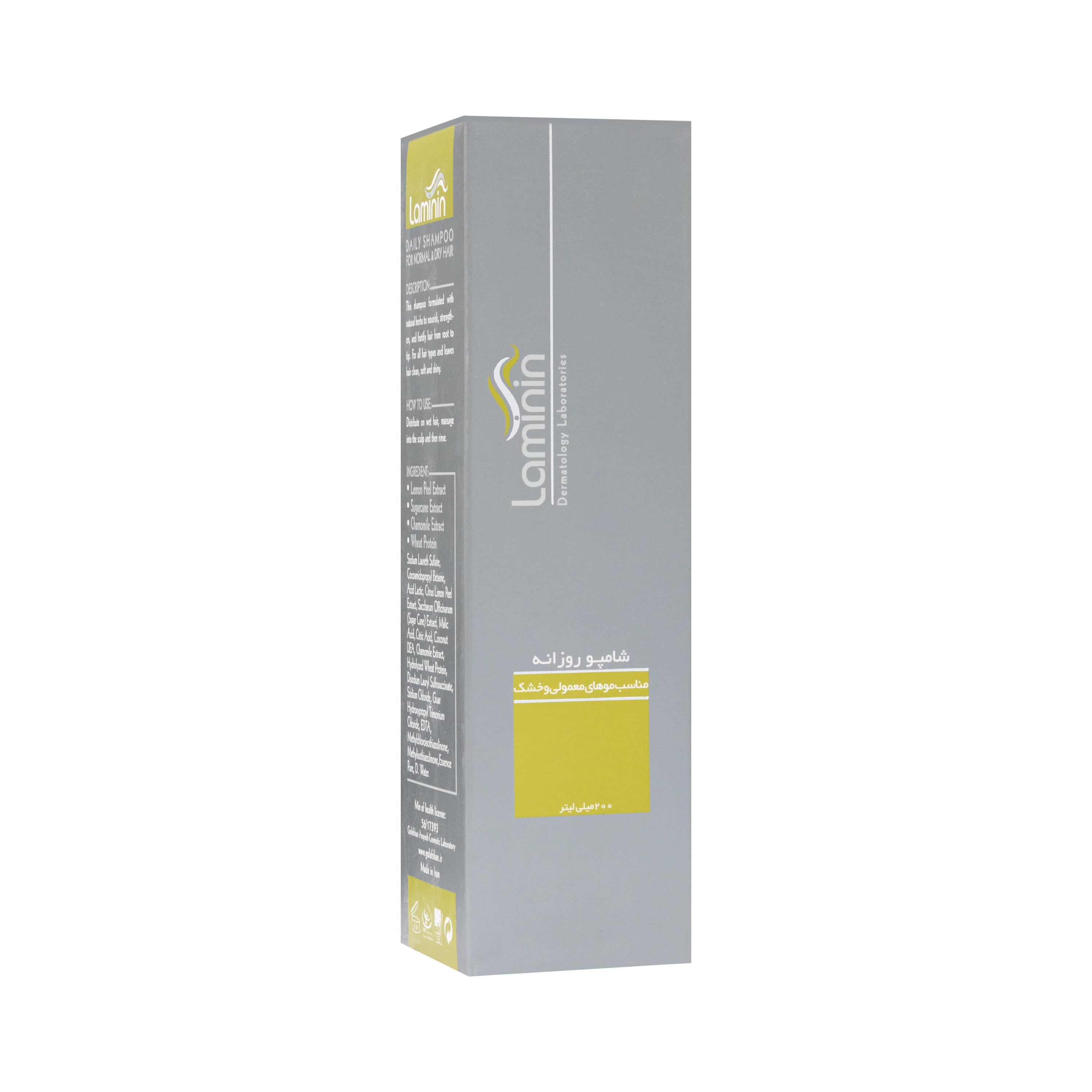 موهای معمولی هم به شامپوهای مناسب با ساختارشان احتیاج دارند و صرف اینکه موهای معمولی داریم نباید از هر شامپویی که در دسترس بود استفاده کرد. شامپوی روزانه لامینین (Laminin) مناسب افراد با موهای معمولی و حتی خشک است که هر روز موهای خود را شستشو می دهند به همین دلیل نیاز به پاک کنندگی قوی وجود ندارد. در ترکیبات این شامپو از عصاره بابونه، پروتئین هیدرولیز شده گندم و سراماید برای تقویت مو و از گوار برای نرم کنندگی و رطوب رسانی مو استفاده شده است.