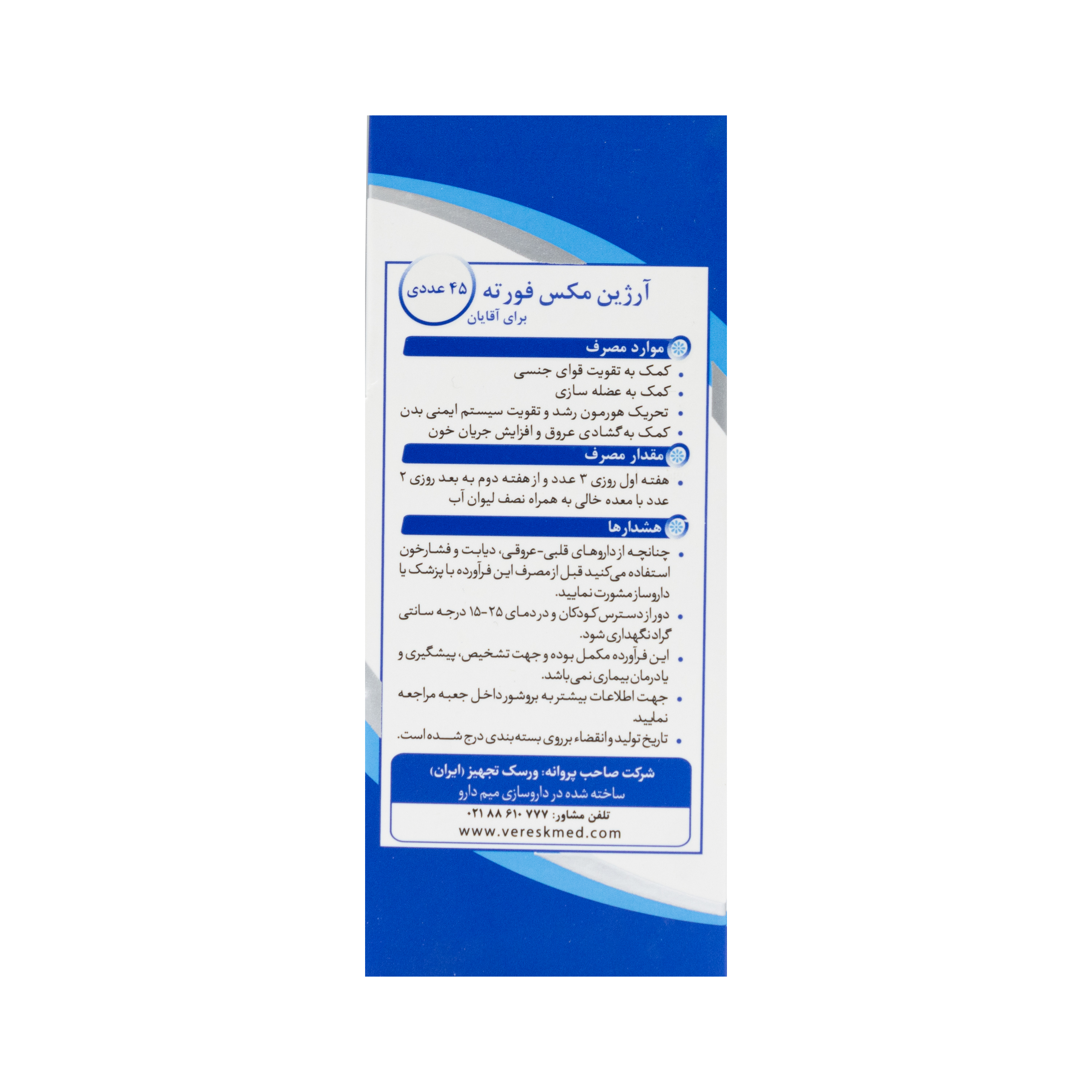• این فرآورده مکمل بوده و جهت تشخیص، پیشگیری و یا درمان بیماری نمی باشد.