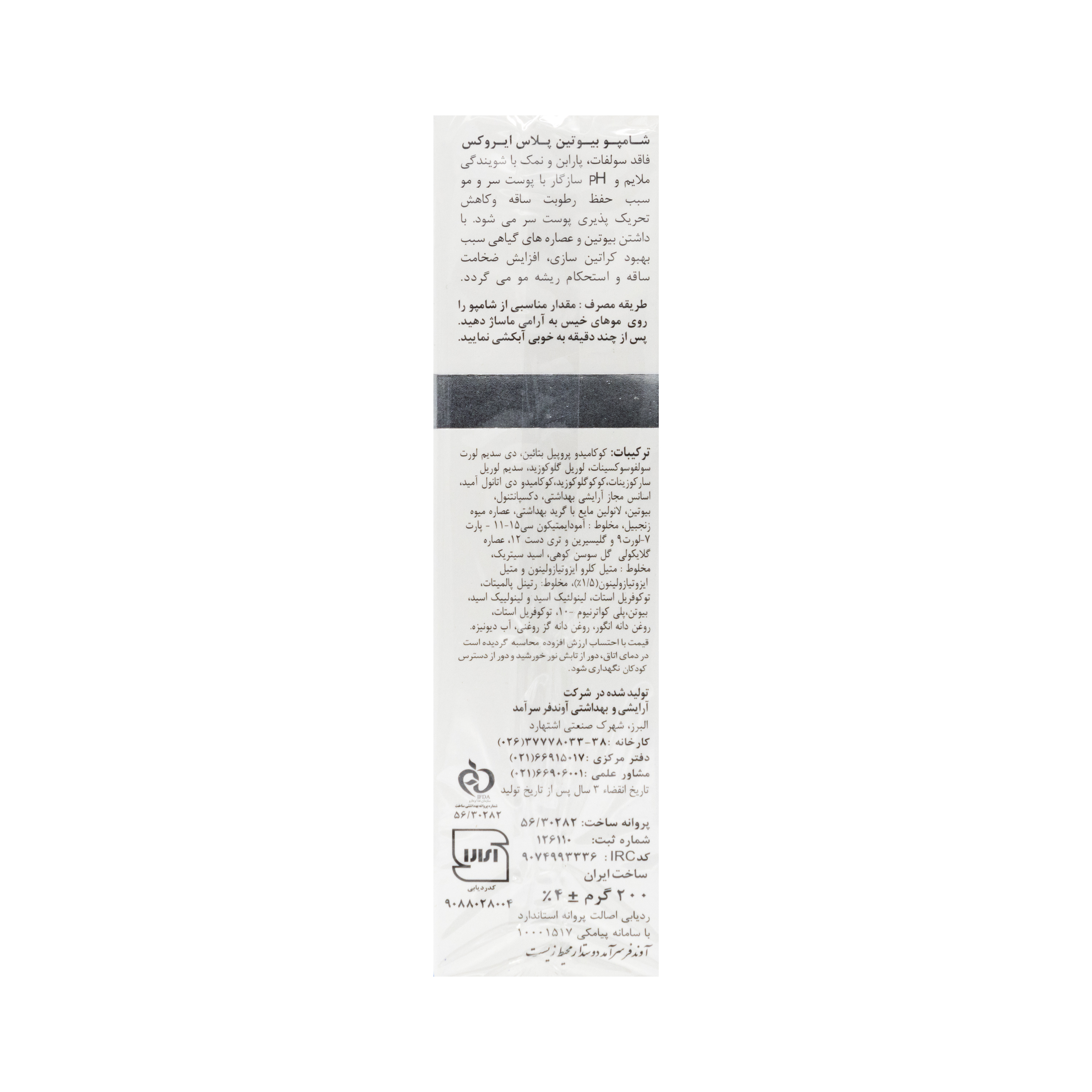 تولید شده در شرکت دارویی، آرایشی و بهداشتی ایران آوندفر البرز جاده شهریار شهرک صنعتی سیمین دشت