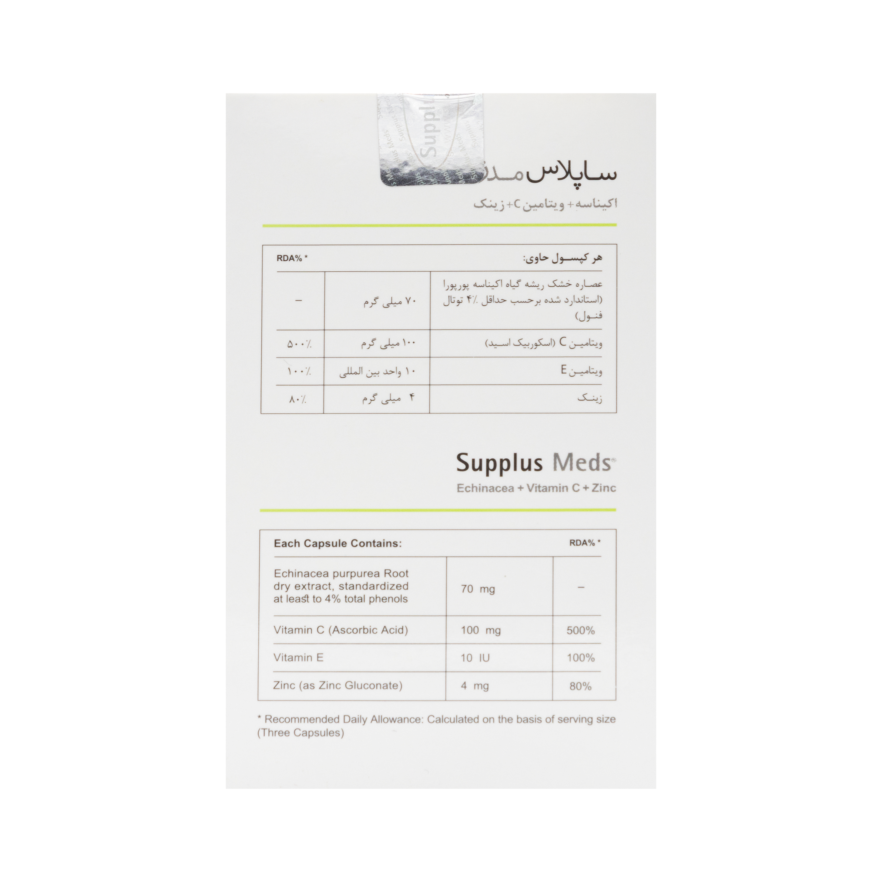 کپسول اکیناسه و ویتامین C و زینک ساپلاس مدز