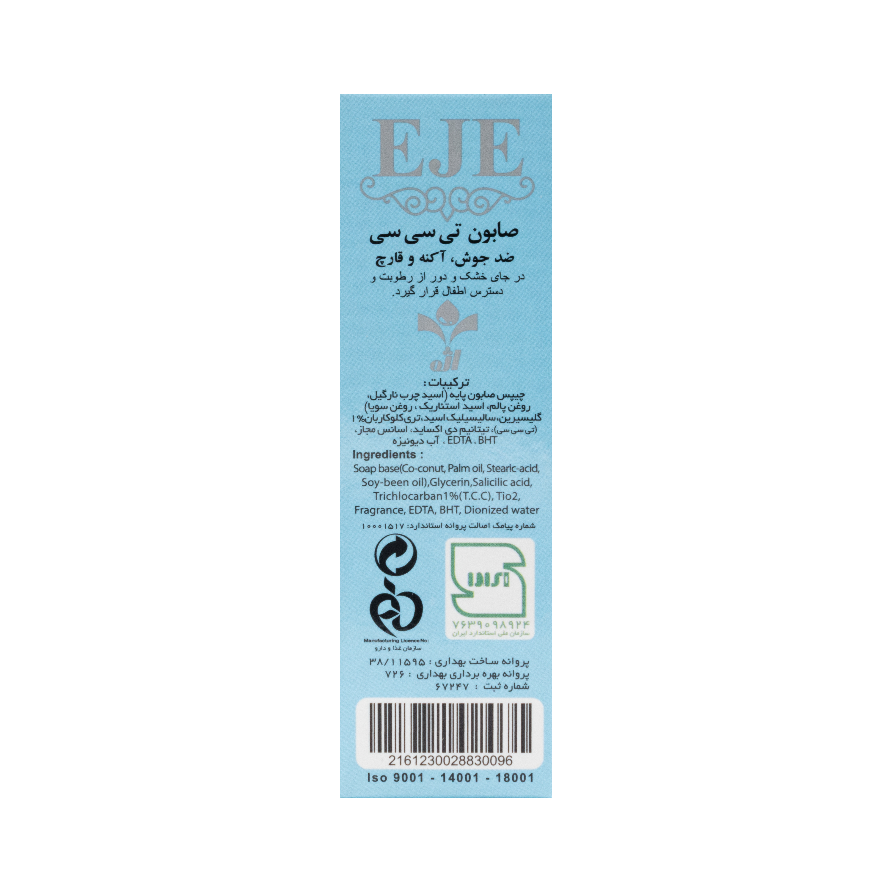 از آن جایی که علت بوی نامطبوع بدن و پا به علت تجمع باکتریها می باشد با استفاده از صابون TCC اژه برای شستشوی بدن و پا می توان از ایجاد بوی نامطبوع بدن جلوگیری کرد. وجود مقادیر مناسبی از گلیسیرین به عنوان رطوبت رسان در این صابون از خشکی احتمالی پوست جلوگیری می کند.