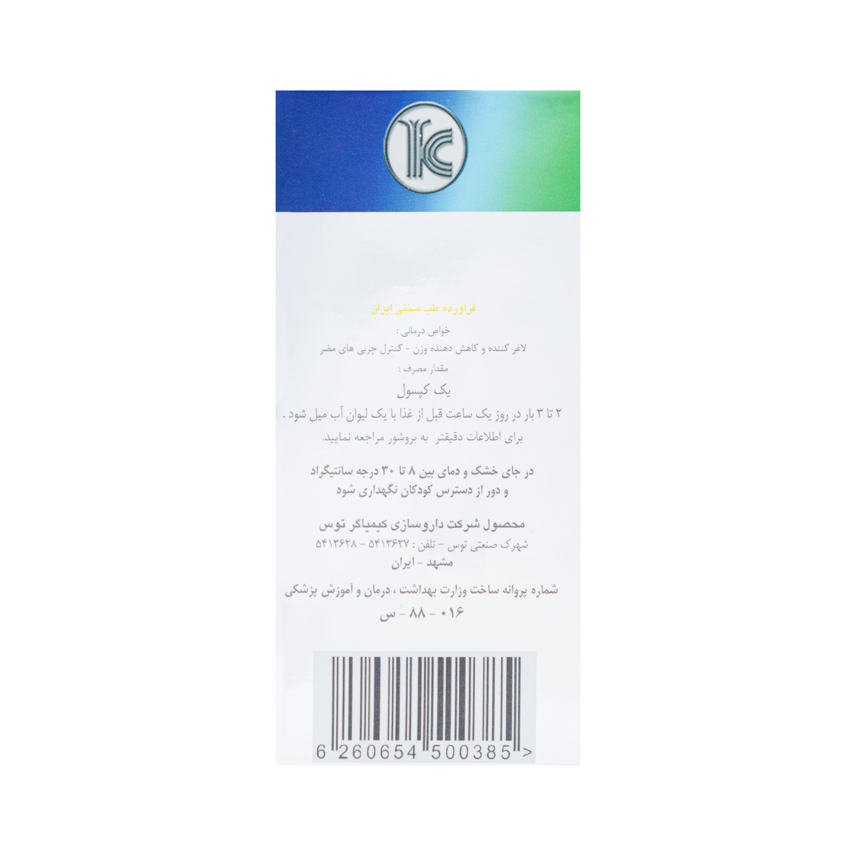 | مشخصات کپسول لاغری کیمیاگر توس |