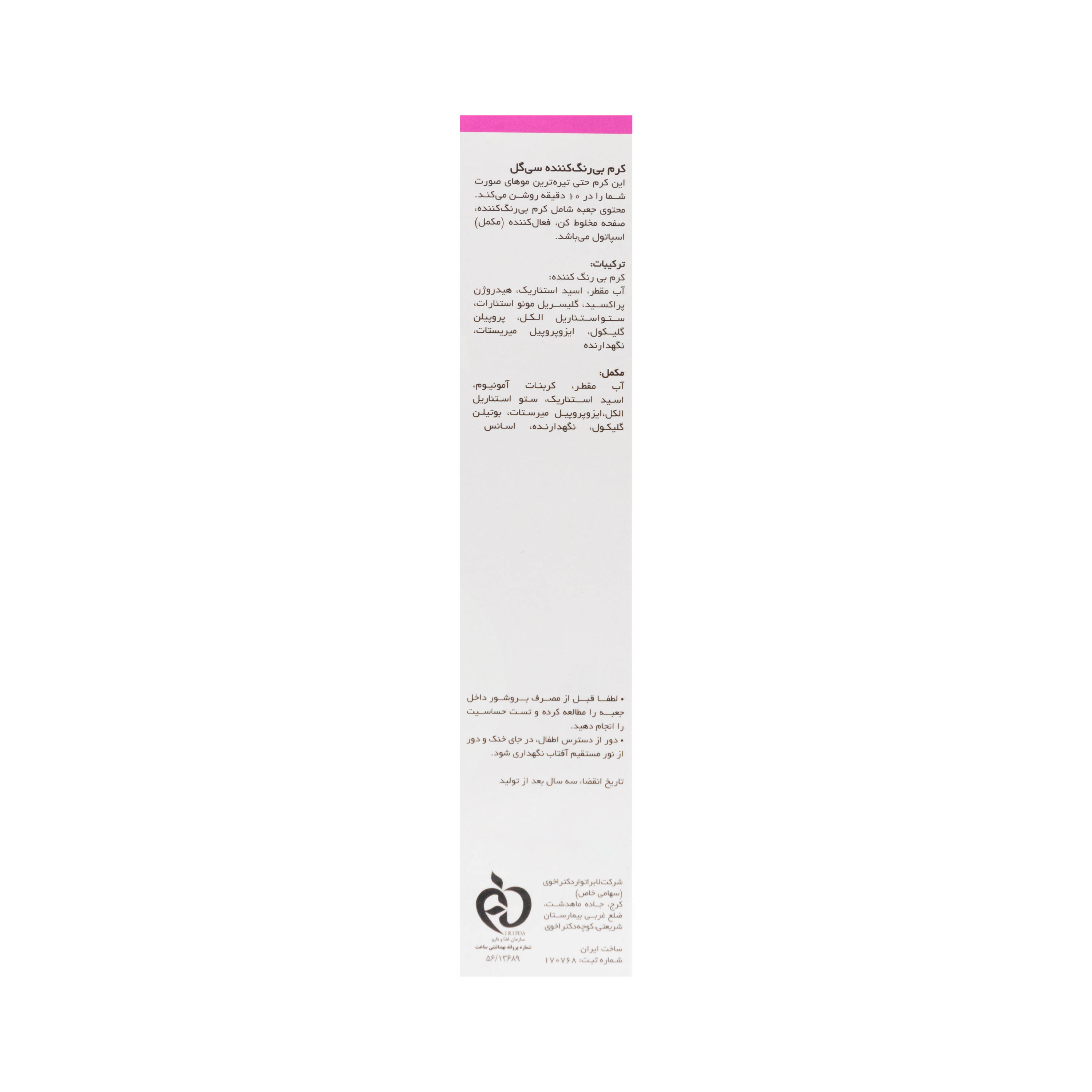 کرم بی رنگ کننده 60 میلی لیتر + مکمل 30 میلی لیتر سی گل
