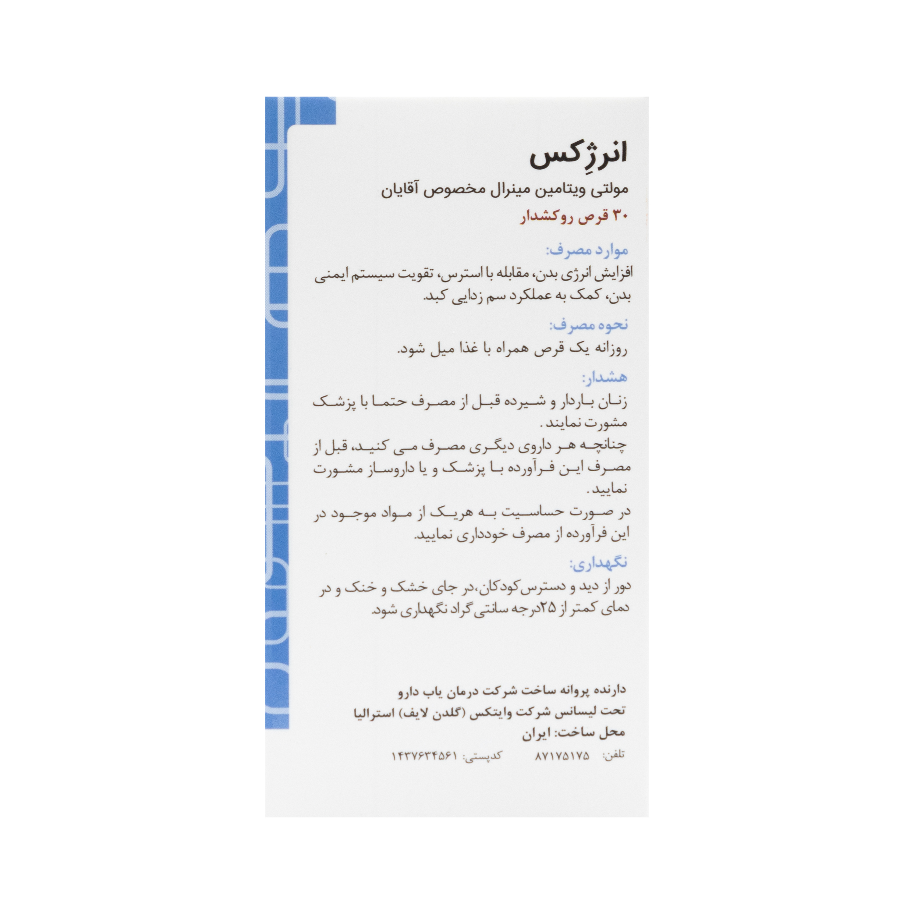 قرص انرژکس مولتی ویتامین مینرال آقایان 30 عددی گلدن لایف