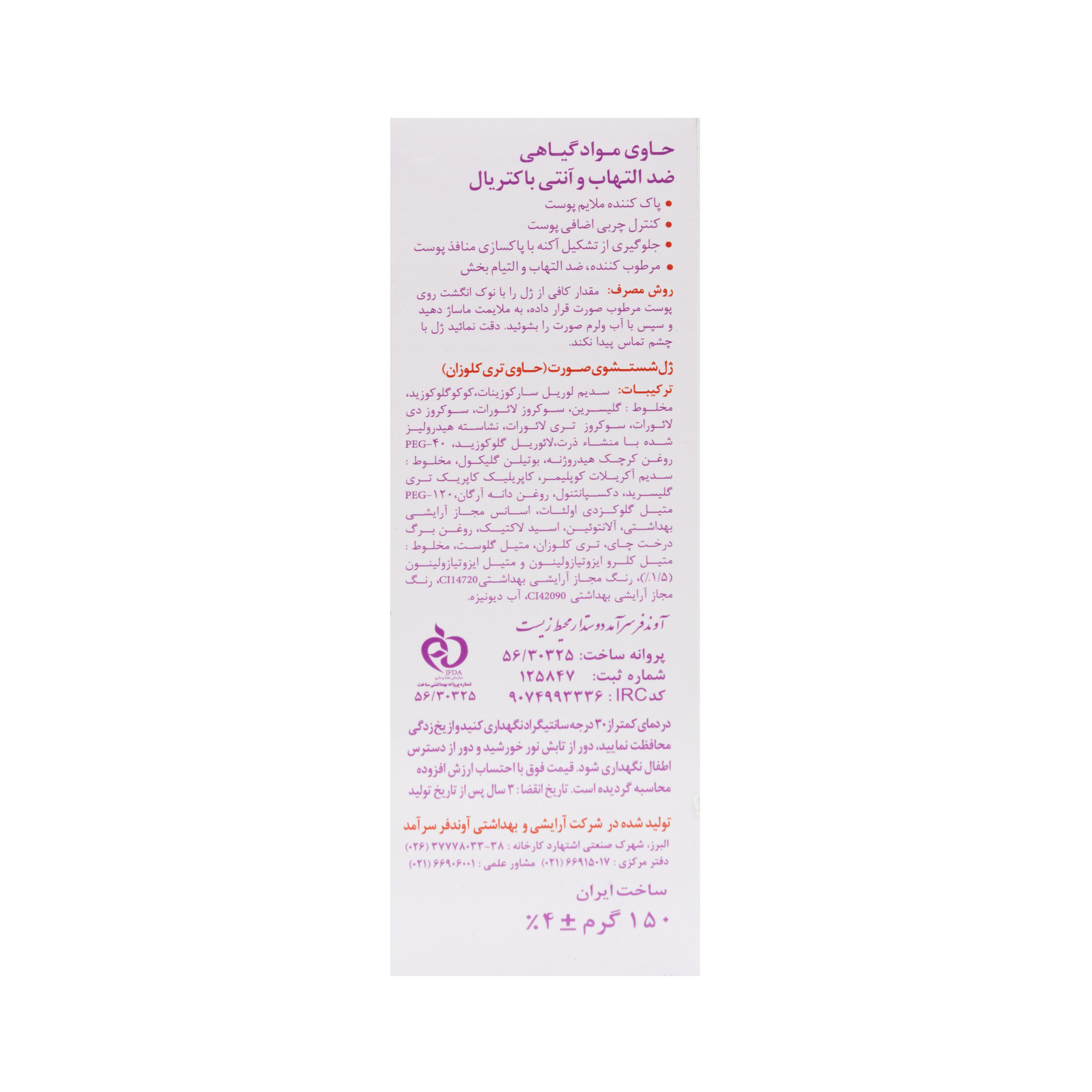 مقدار کافی از ژل را با نوک انگشت روی پوست مرطوب صورت قرار داده، به ملایمت ماساژ دهید و سپس با آب نیم گرم صورت را بشویید.