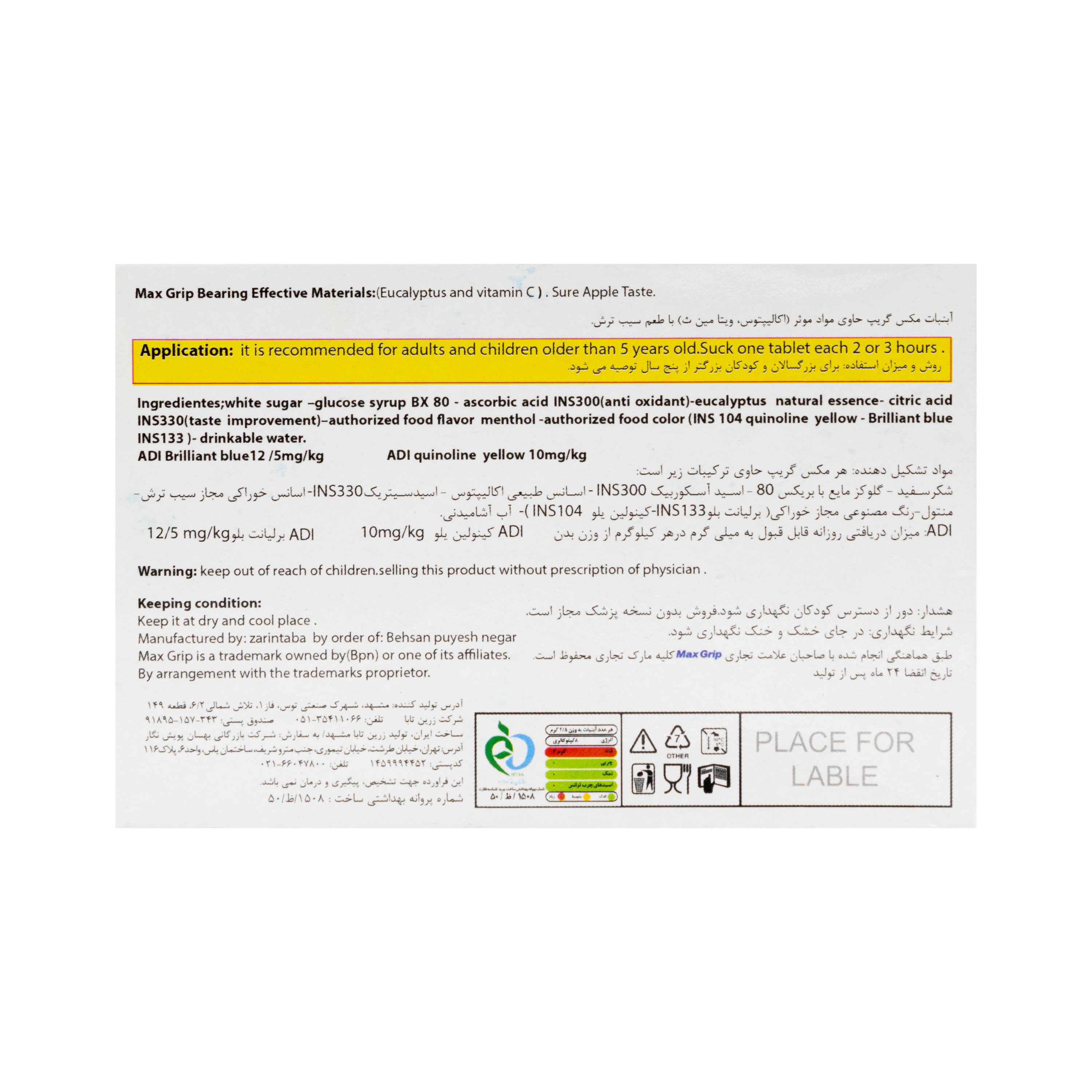 آبنبات مکیدنی با طعم سیب ترش 12 عددی مکس گریپ
