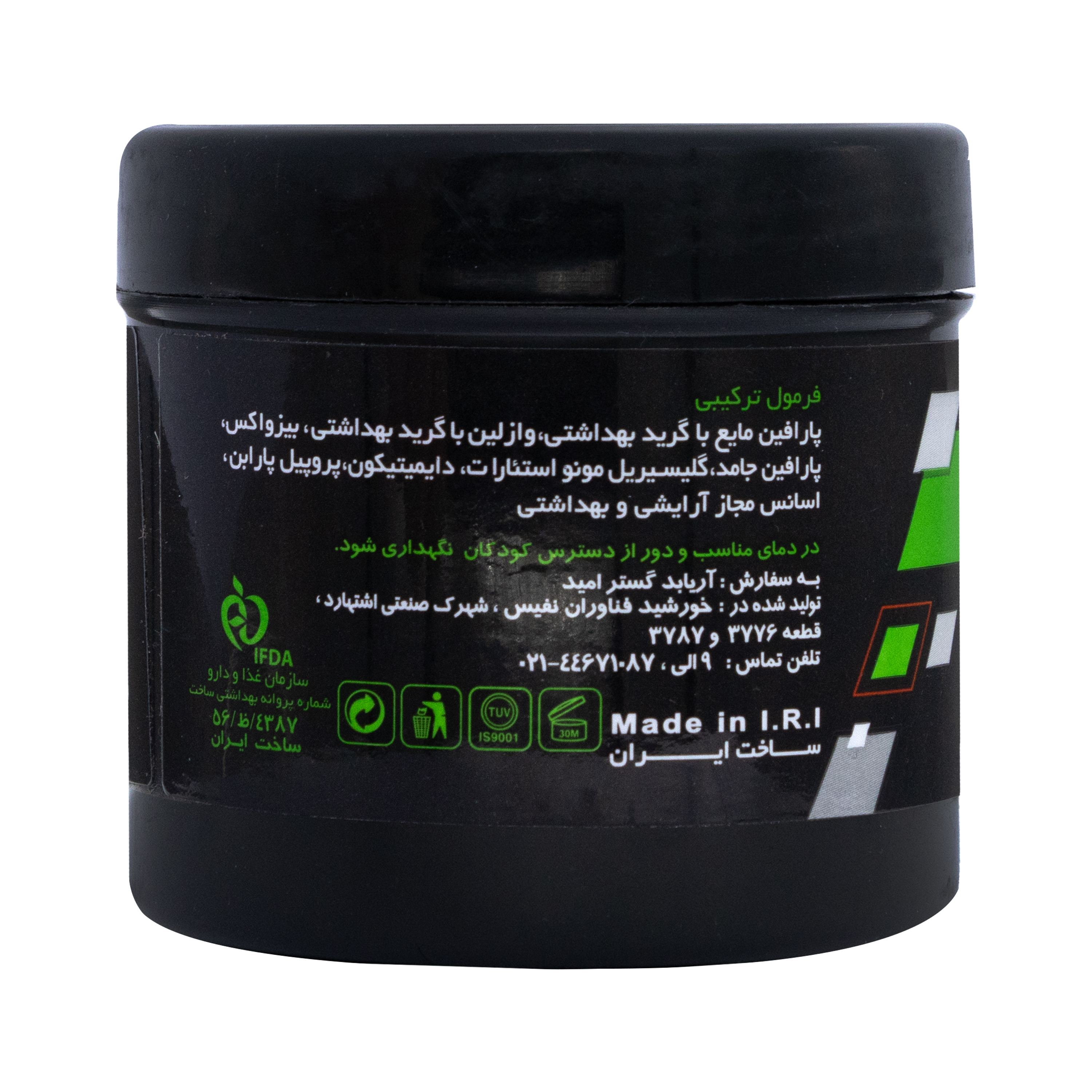واکس مو کریستال مدل «Hair Styling Wax» حاوی ویتامین E و عصاره ی سیر و دکسپنتانول است.