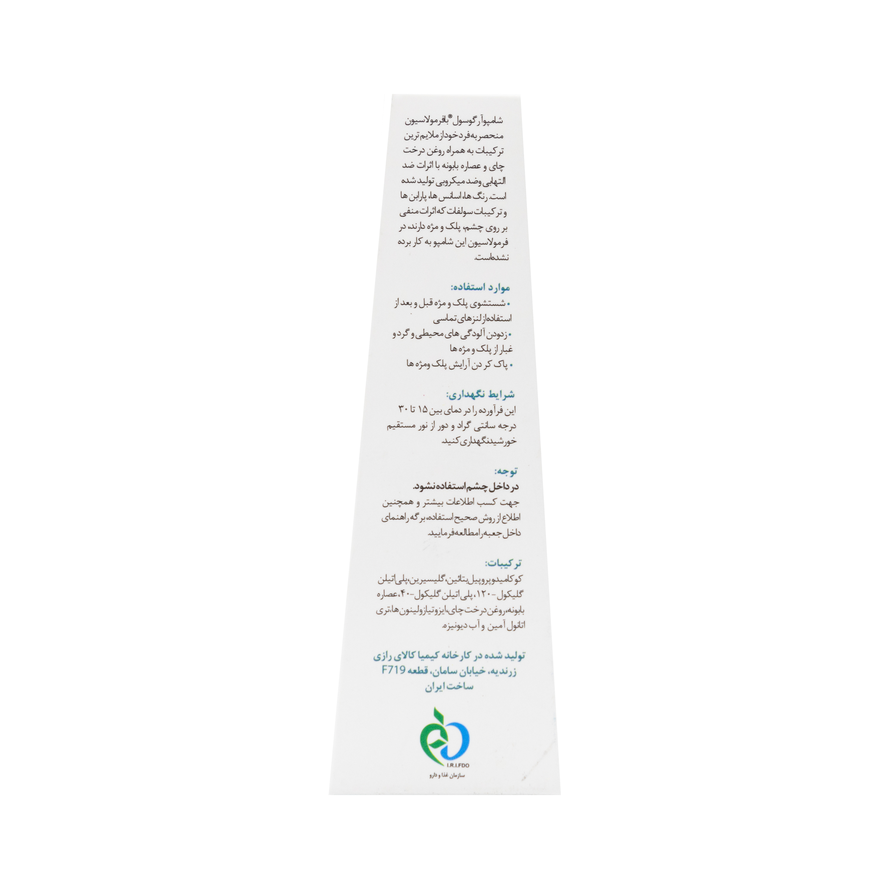 با توجه به اهمیت این موضوع، شرکت کیمیا کالای رازی با همکاری متخصصین دارویی و آرایشی-بهداشتی اقدام به فرمولاسیون شامپو تخصصی شست و شوی پلک و مژه آرگوسول و تولید این محصول به وسیله با کیفیت ترین مواد اولیه نموده است. بر خلاف سایر شامپو ها ، در این شامپو ، از رنگ ، اسانس ، ترکیبات دارای سولفات ، سدیم کلراید ، پارابن ها، حالت دهنده ها و سایر ترکیبات اضافی که باعث سوزش و تحریک چشم ها می شوند و ممکن است برای چشم مضر باشند ، استفاده نشده است. ویسکوزیته این شامپو در حالت بهینه، جهت شست و شوی پلک و مژه ها تنظیم شده است ، زیرا ویسکوزیته بالای شامو می تواند باعث خشکی، سوزش و تخریک چشم ها شود همچنین PH این فرآورده در محدوده PH طبیعی چشم ، یعنی 5.5 تا 7 تنظیم شده است که این امر باعث به حداقل رسیدن تحریک چشم می شود. در این محصول از ملایم ترین دسته سورفکتات ها یعنی سورفکتانت های آمفوتریک و از بین این دسته ، از ملایم ترین آنها استفاده شده است. کف ایجاد شده توسط این شامپو به صورت کنترل شده بوده و کمتر از سایر شامپو ها می باشد.