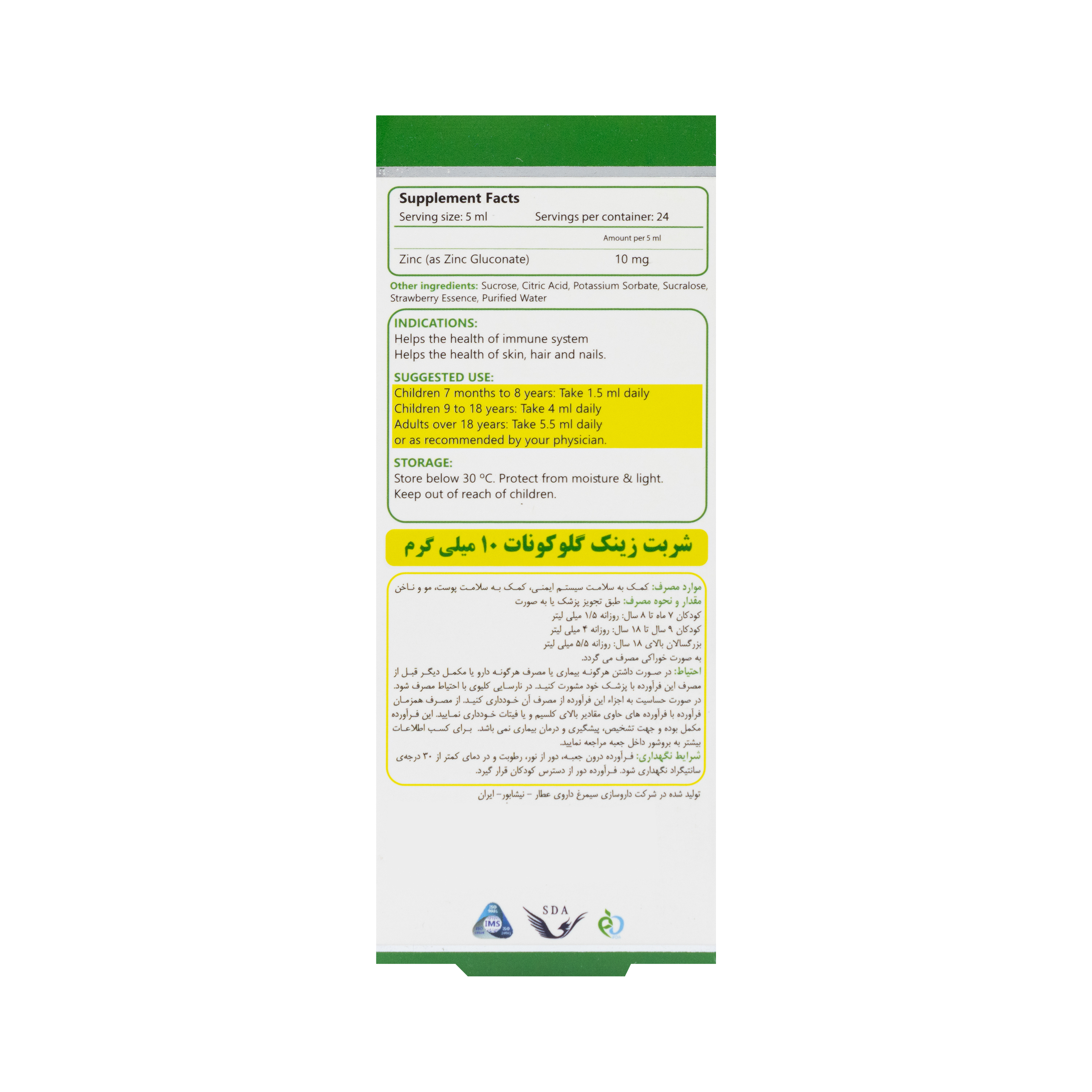مشخصات شربت زینک گلوکونات 10 میلیگرم سیمرغ |