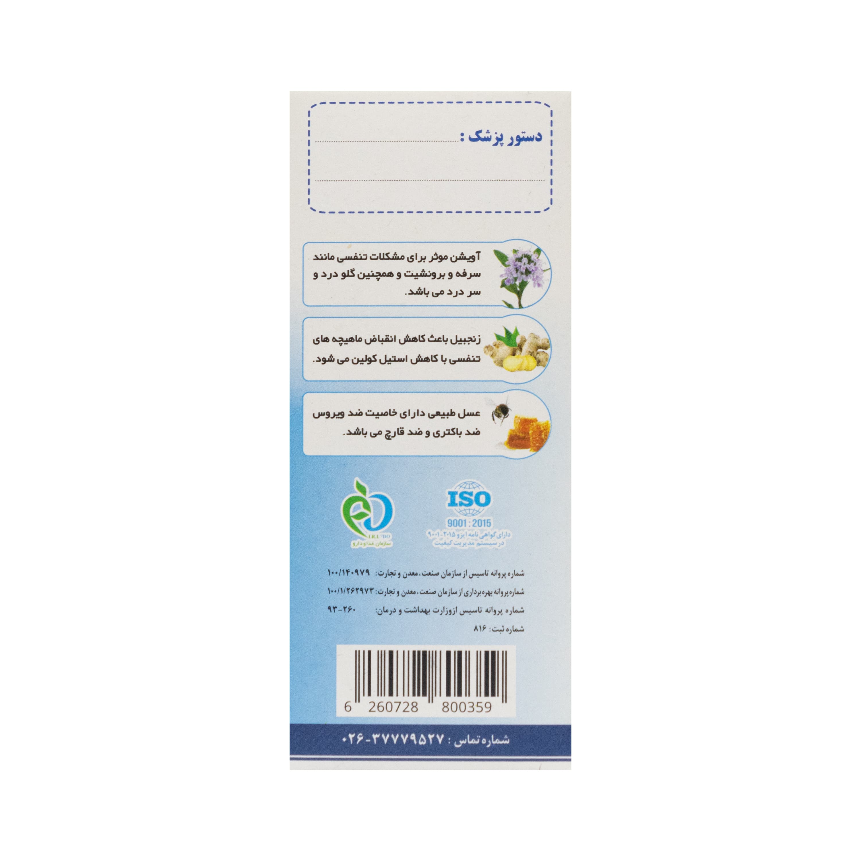 با سلام شربت آویشن + زنجبیل + عسل کیمیاگر از سن دو سالگی قابل استفاده است. این شربت تاثیر مثبتی در رفع سرفه و دفع خلط دارد.