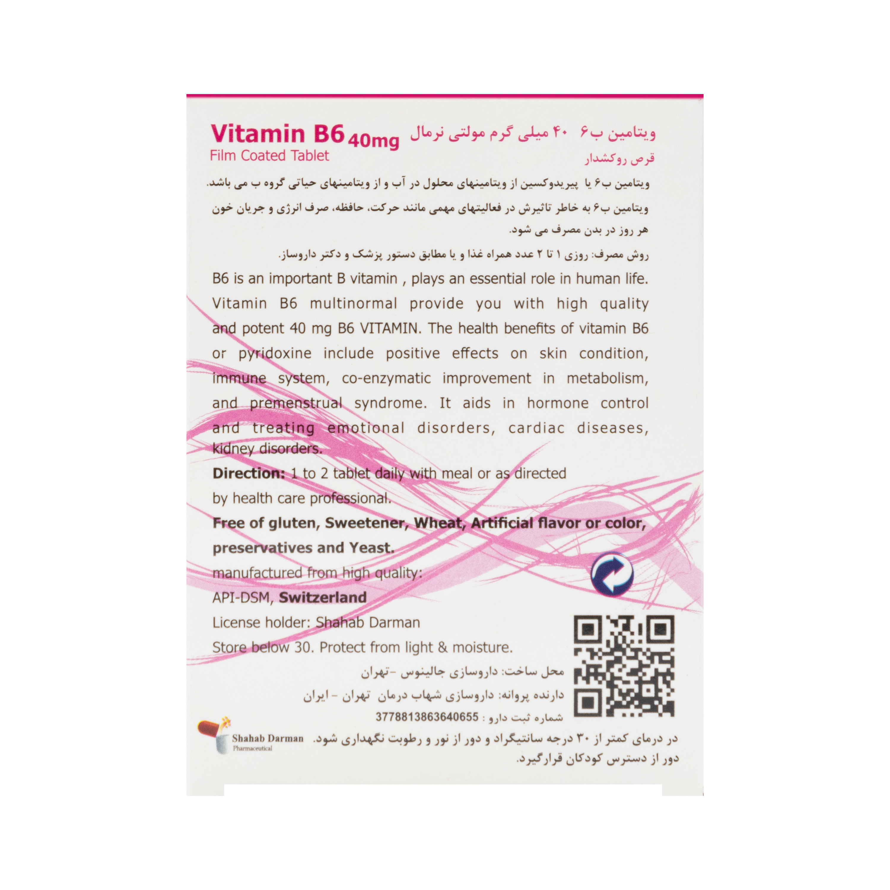 قرص ویتامین ب6 40 میلیگرم 60 عددی مولتی نرمال