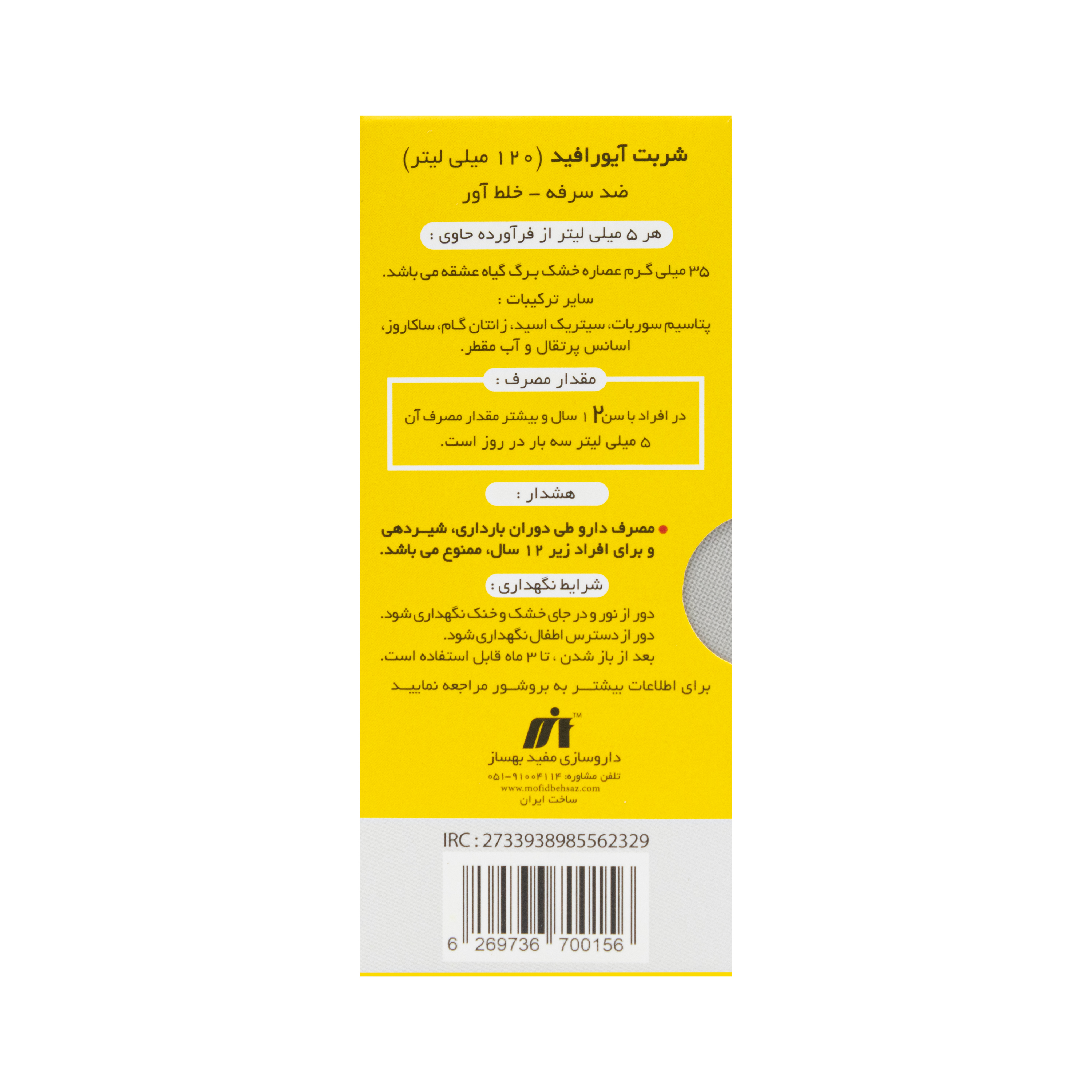 شربت آیورافید بزرگسال مفید بهساز 120 میلی لیتر