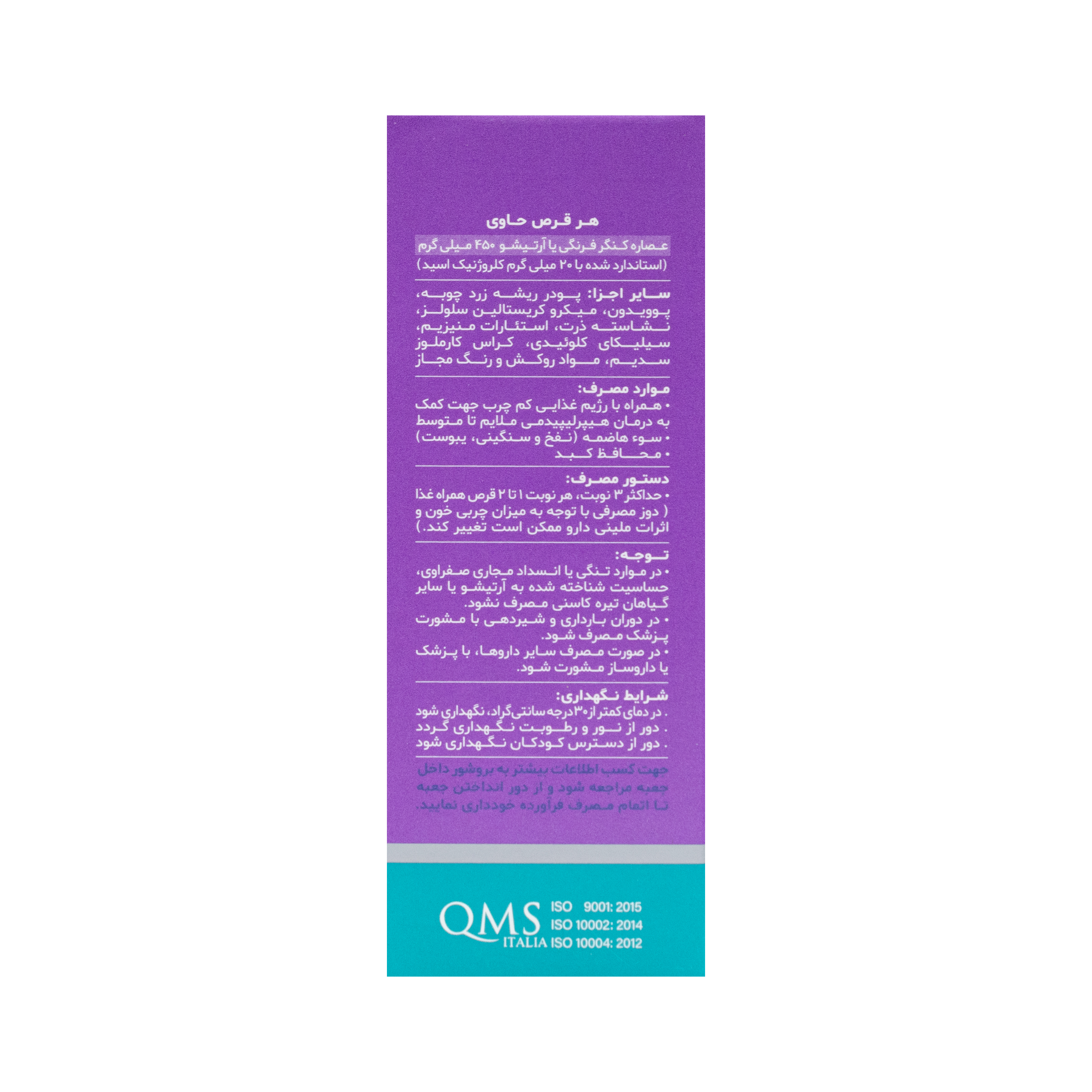 - عصاره کنگر فرنگی یا آرتیشو ۴۵۰ میلی گرم