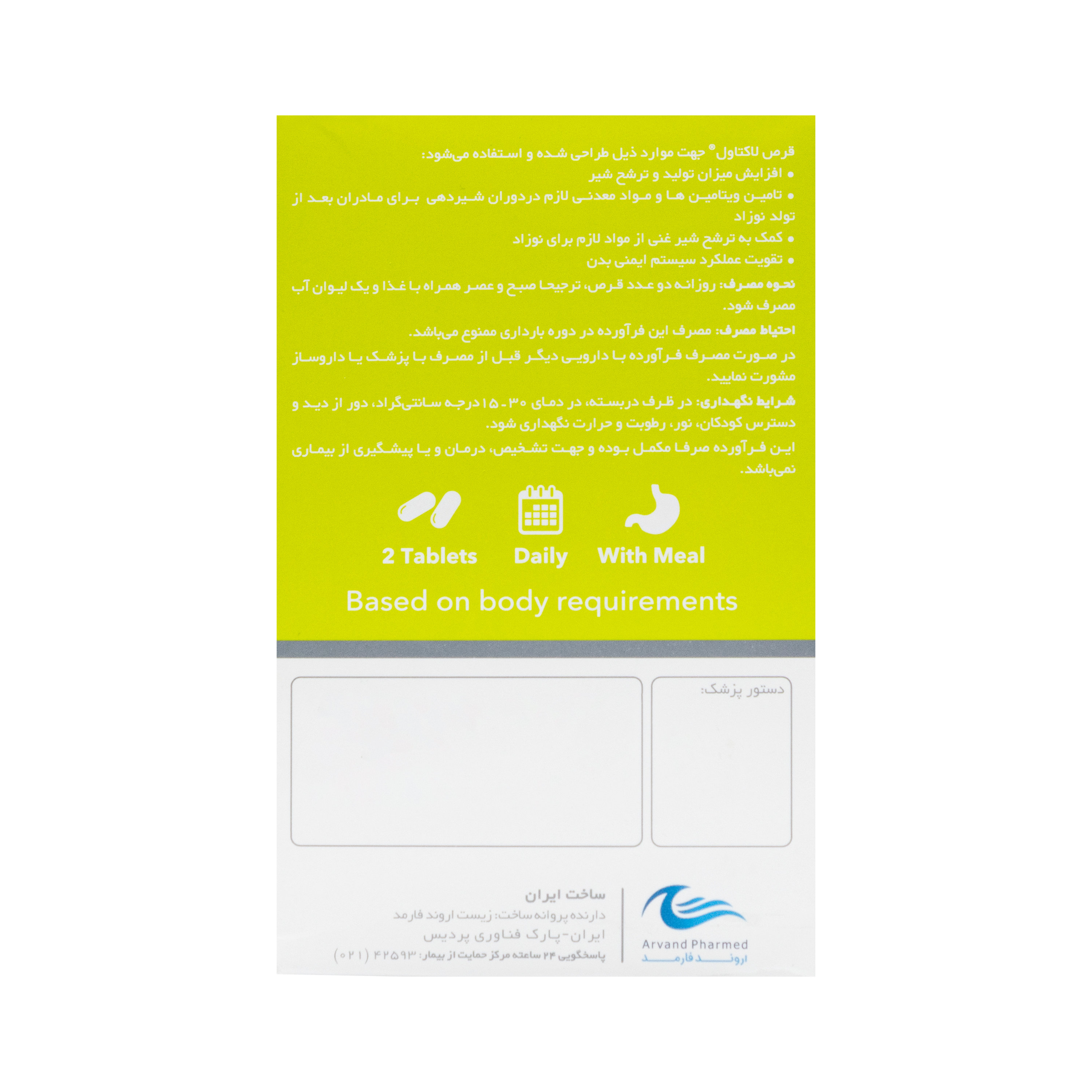 قرص لاکتاول محصولی از شرکت زیست اروند فارمد است و یک مکمل غذایی تخصصی برای دوران شیردهی مادران بعد از تولد نوزاد میباشد. قرص شیرافزا لاکتاول شامل ویتامینهایی مانند B1، B12، E، D3 ،C، A و فولیک اسید و مواد معدنی مانند کلسیم، منیزیم، سلنیوم و زینک است. در این قرص همچنین از خواص عصاره گیاهان موثر در دوره شیردهی مانند شنبلیله، رازیانه و خارمریم نیز بهره گرفته شده است.