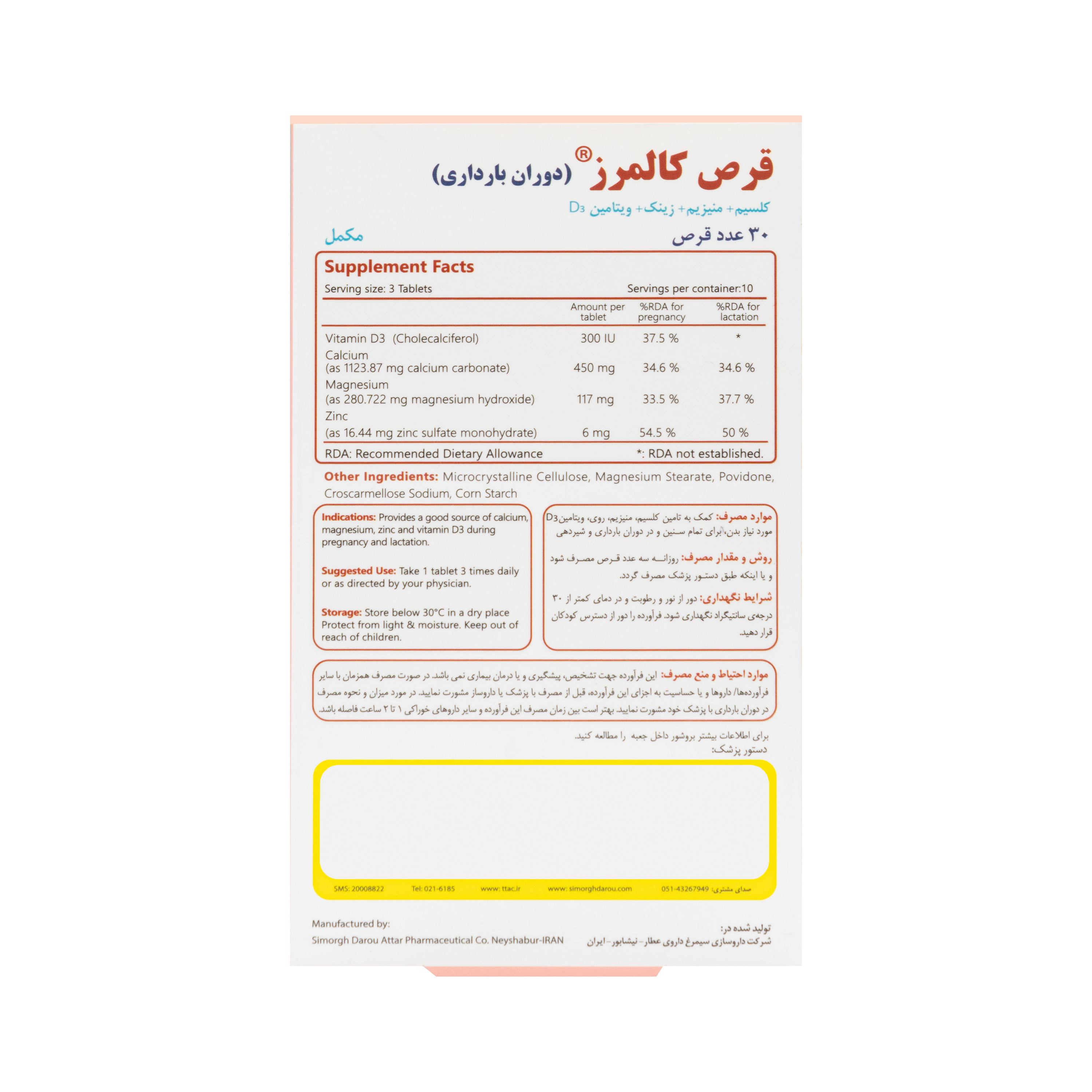 قرص کالمرز دوران بارداری 30 عددی سیمرغ
