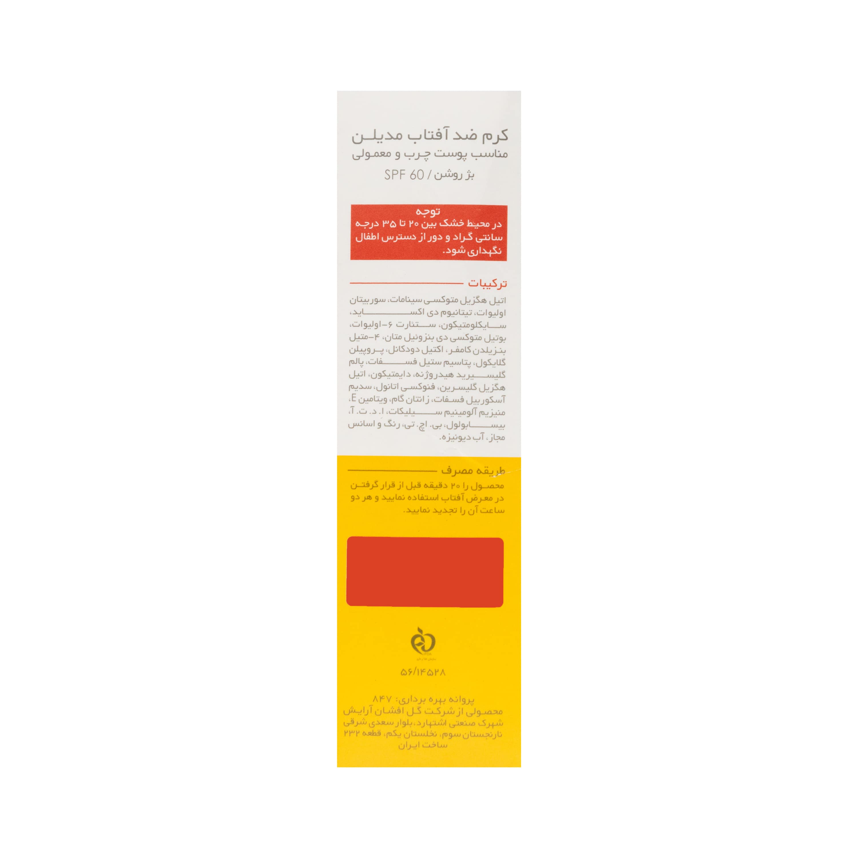 کرم ضد آفتاب رنگی SPF60 فاقد چربی 50 میلی لیتر مدیلن