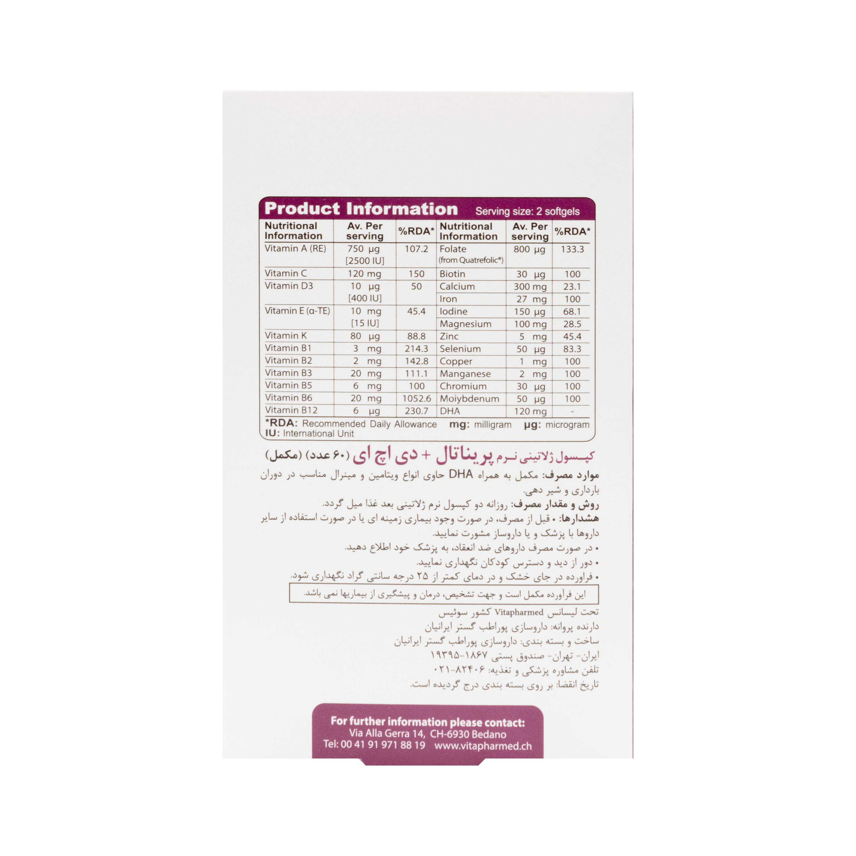 کپسول ژلاتینی نرم پریناتال پلاس دی اچ ای ویواتیون ویتا فارمد