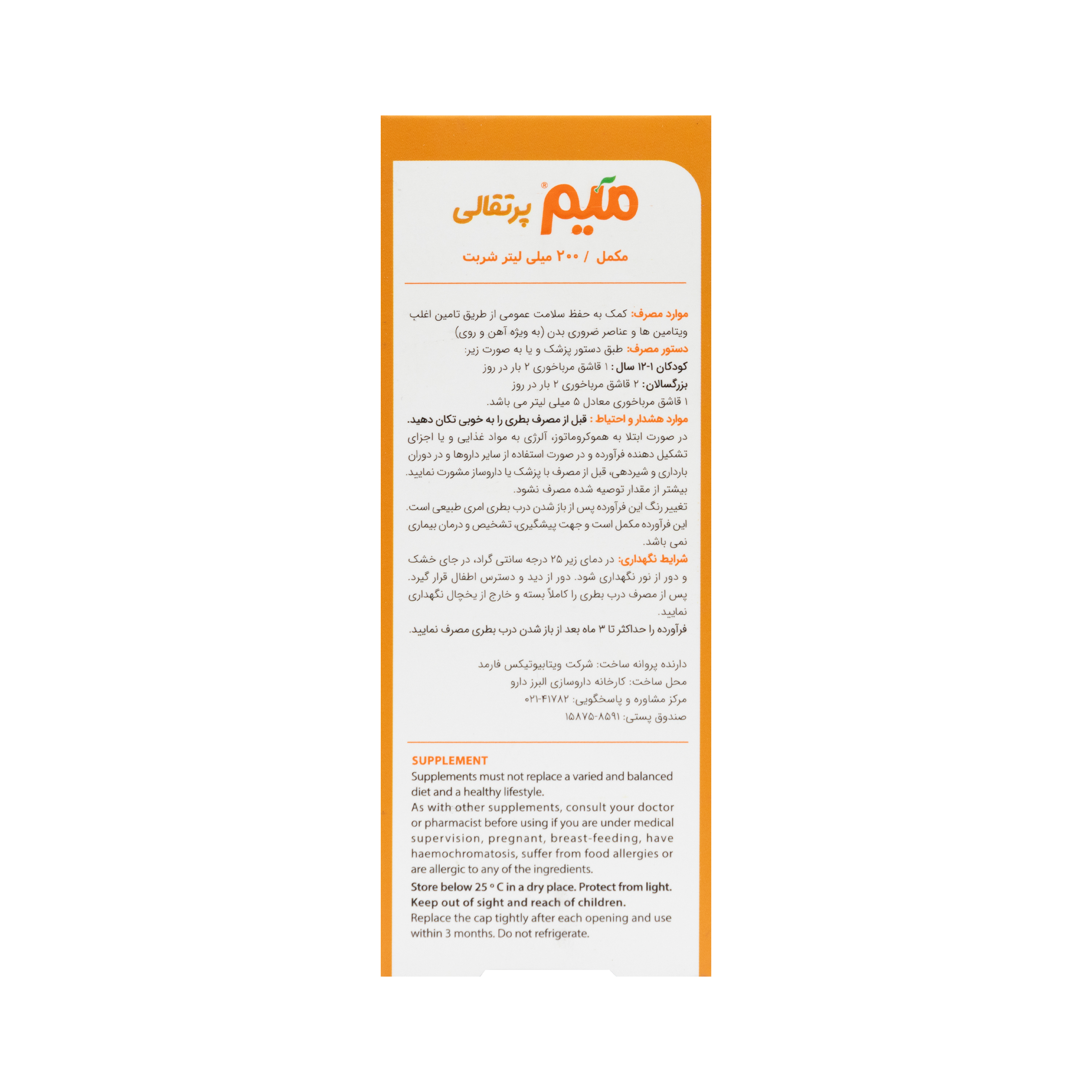 شربت میم اورنج مایر مولتی ویتامین و مینرال + سلنیوم ویتابیوتیکس