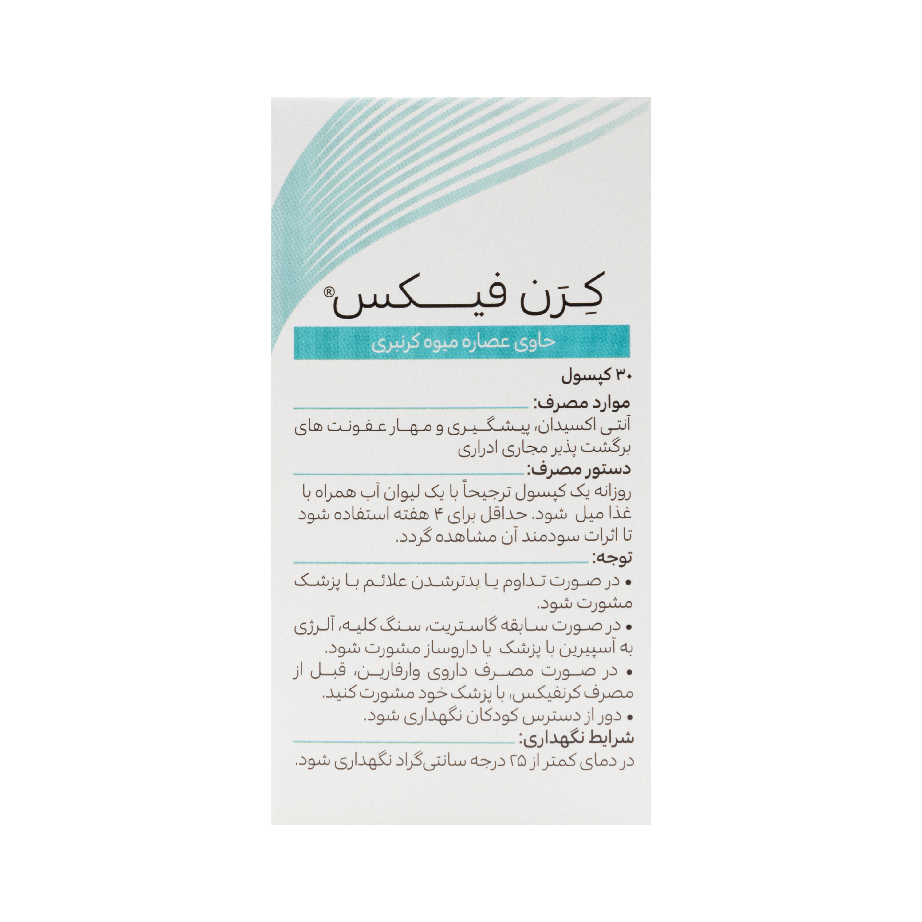 با سلام کرن فیکس یک محصول کمک درمانی در موارد عفونت های ادراری است اما در عفونت کلیه فقط نقش پیشگیرانه دارد. برای درمان عفونت کلیه شما باید حتما آنتی بیوتیک دریافت کنید.