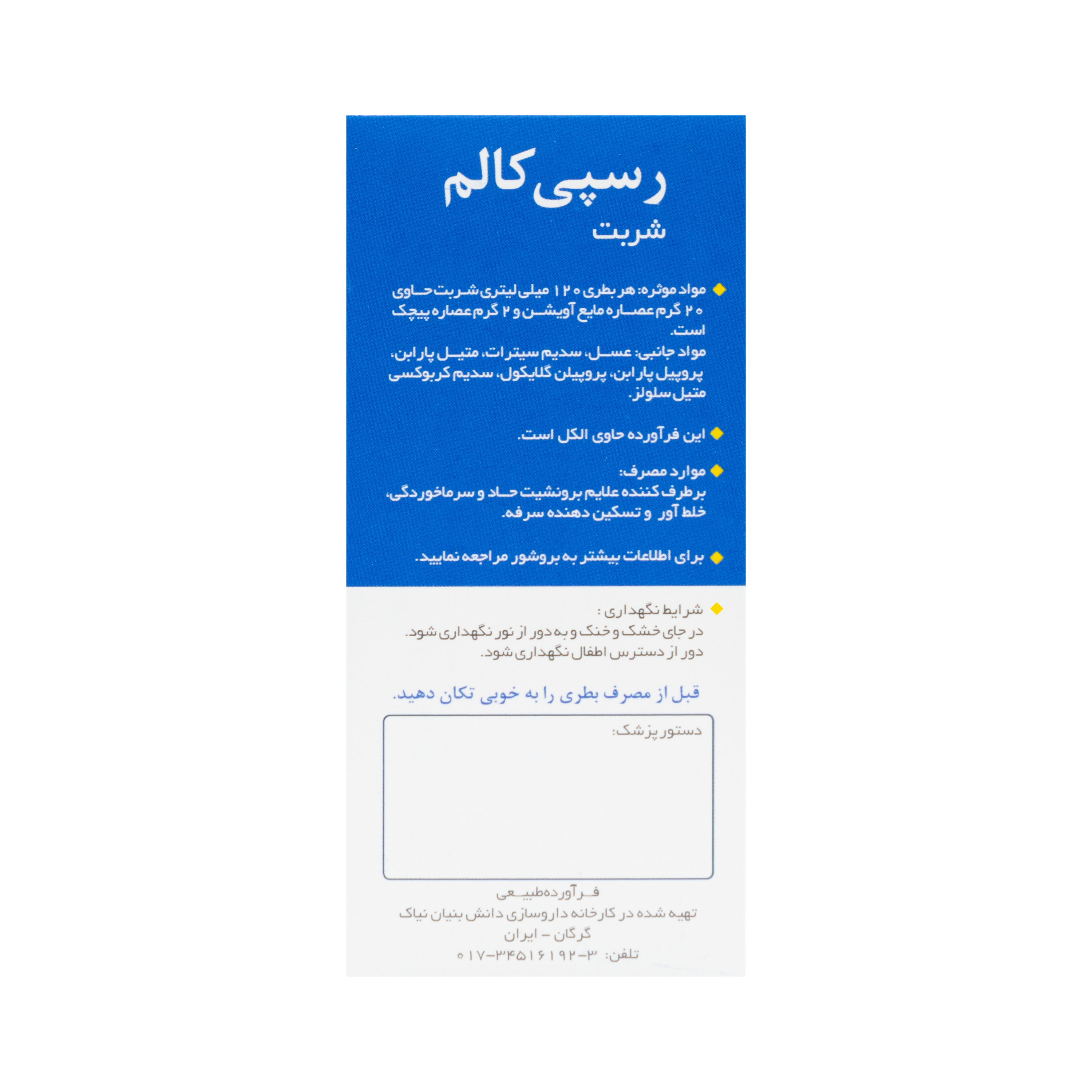 - طریقه مصرف شربت رسپی کالم