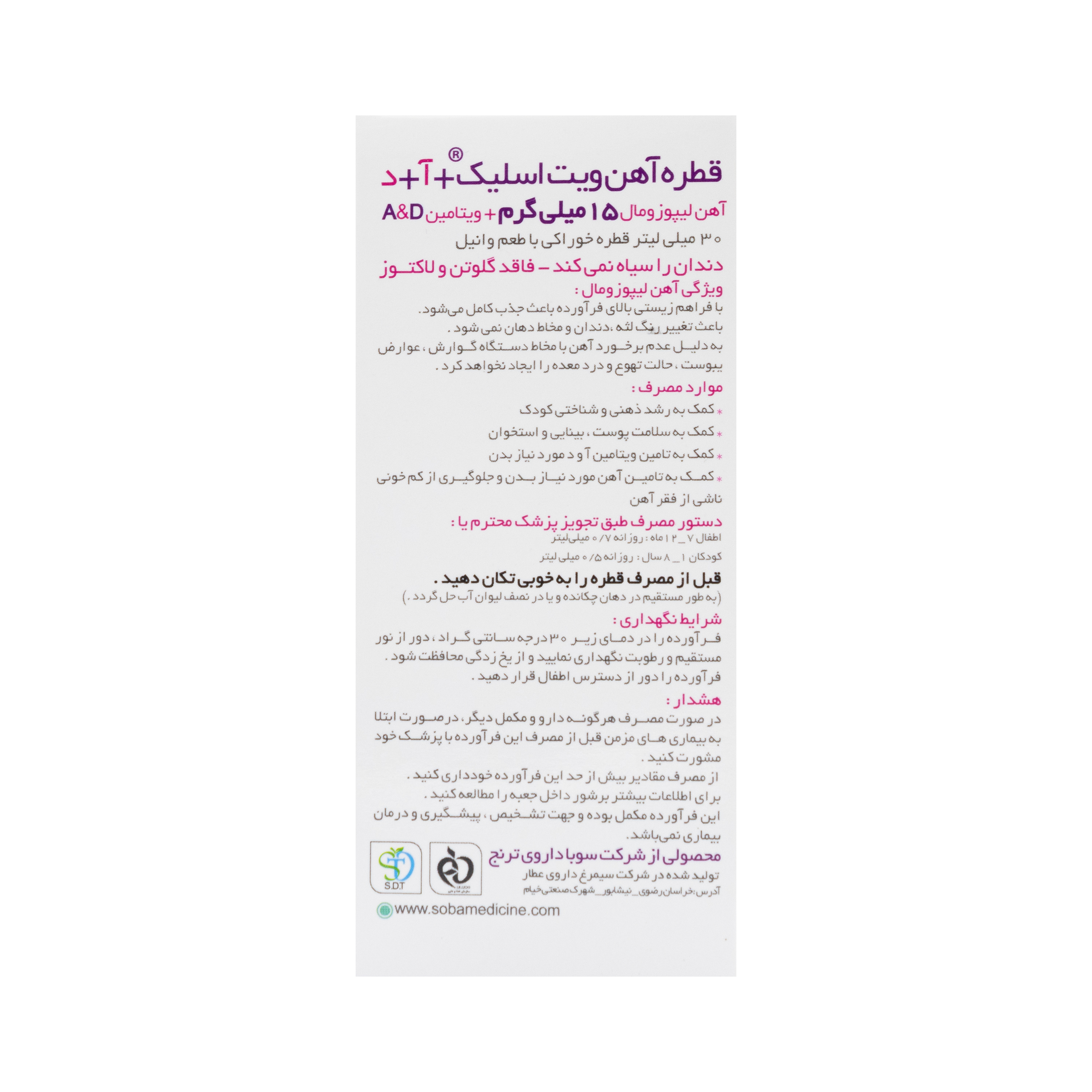 - آهن لیپوزومال ۱۵ میلی گرم + ویتامین آ د (Liposomal Iron 15 mg Plus Vitamin A & D)