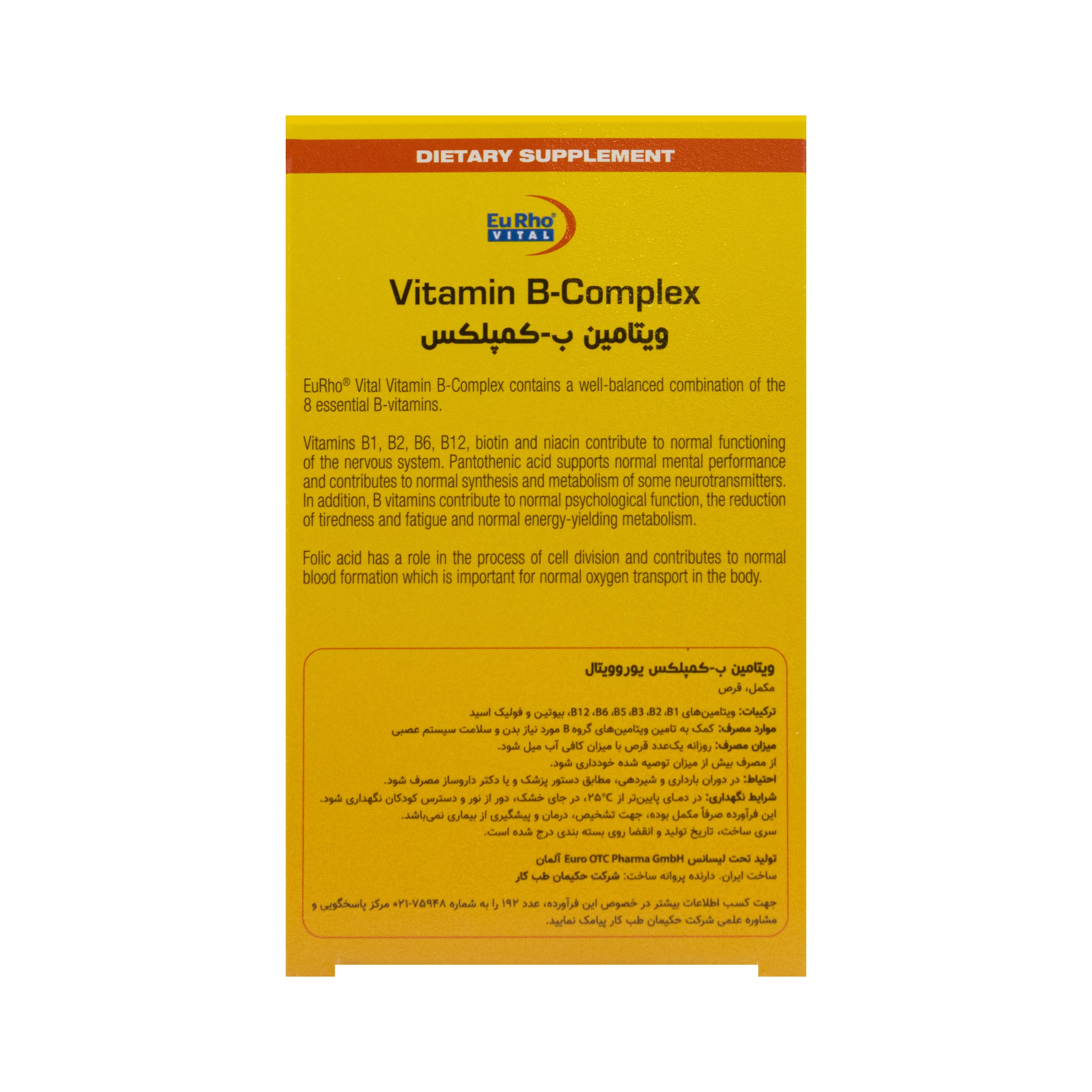 باسلام دوست گرامی، قرص ویتامین ب کمپلکس یورو ویتال به تامین ویتامین هایB12 ،B6 ،B5 ،B3 ،B2 ،B1، بیوتین و فولیک اسید می پردازد.