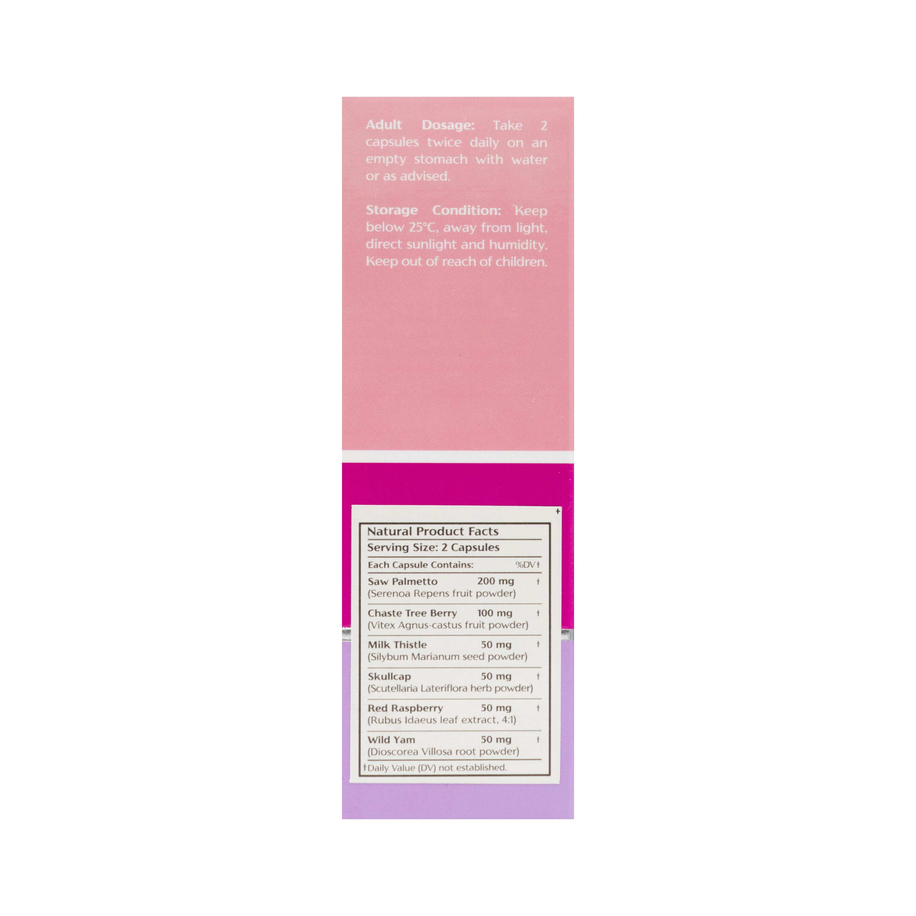 یک فرآورده طبیعی برگرفته از شش گیاه شناخته شده شامل نخل اره ای، پنج انگشت، خارمریم، قاشقک، تمشک قرمز و یام وحشی بوده و نقش بسزایی در تعادل هورمونی در بانوان ایفا نموده و به تنظیم سیکل نامنظم قاعدگی، بهبود علائم پیش از قاعدگی و علائم یائسگی بانوان کمک شایانی می نماید.