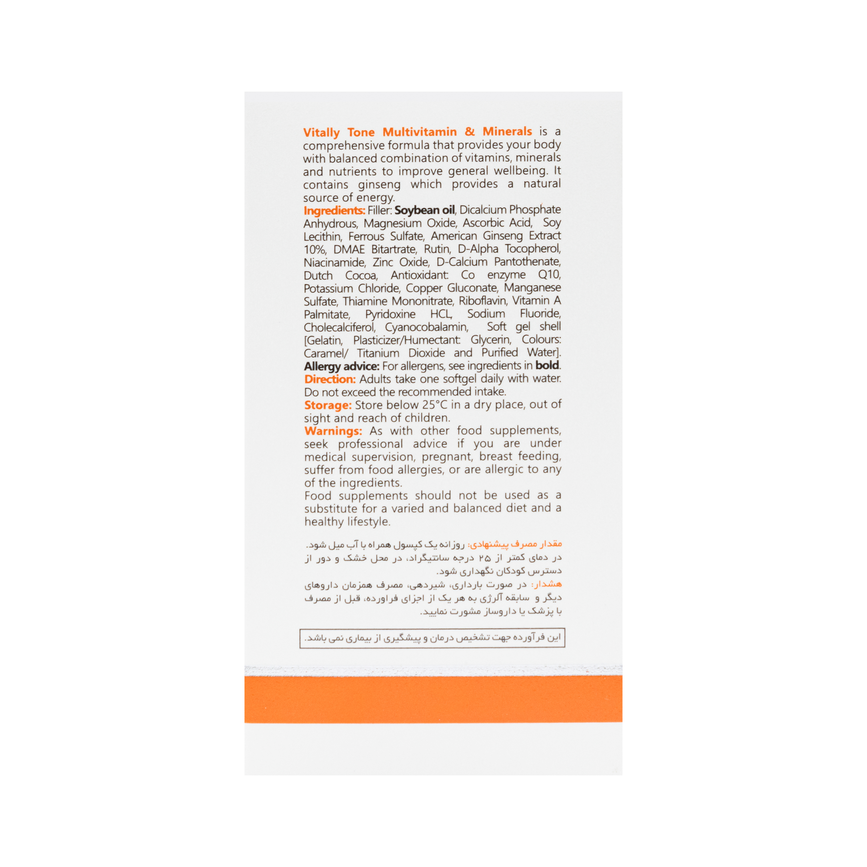 - ویتالی تون محصولی برای بزرگسالان است و برای کودکان و نوجوانان قابل استفاده نیست.