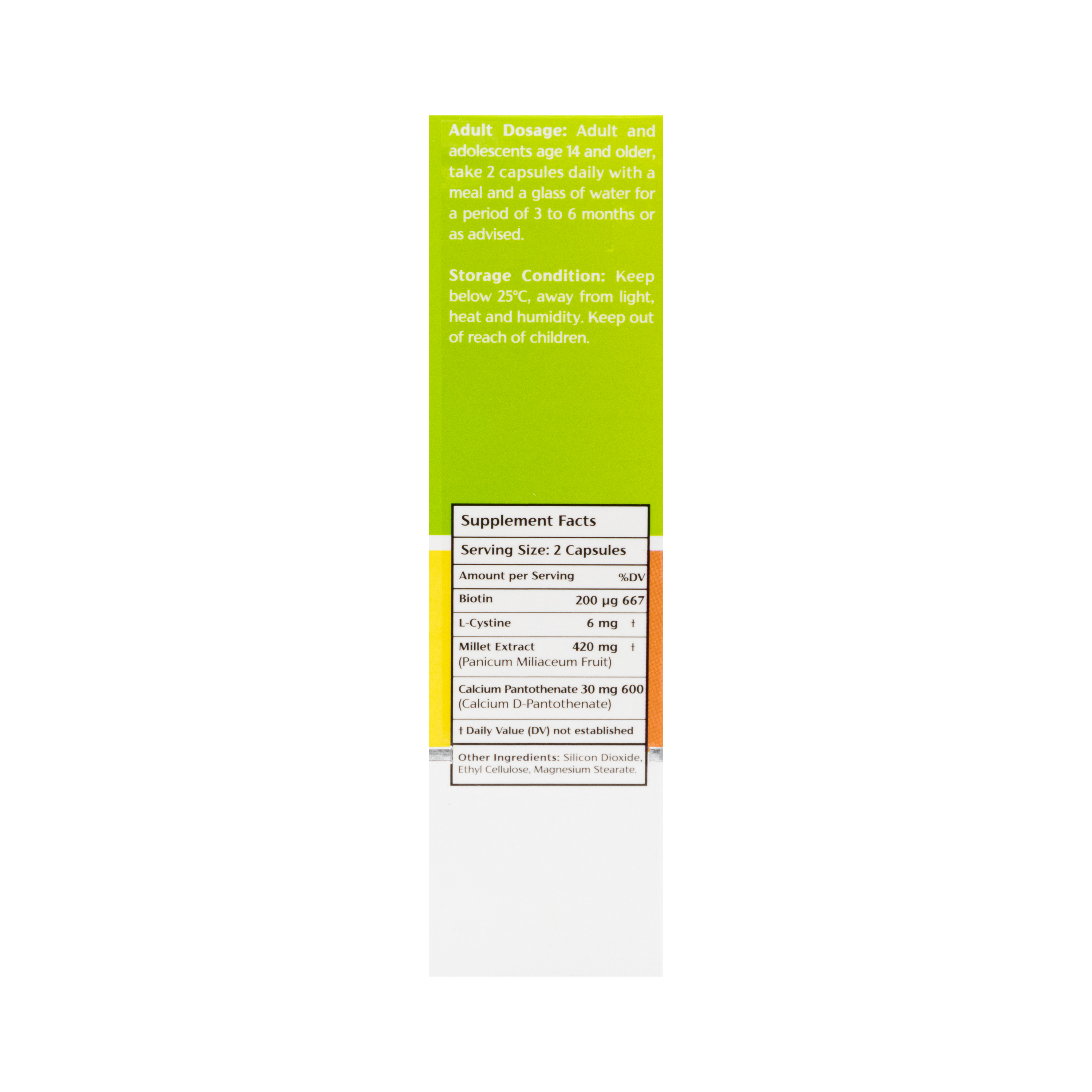 ترکیبی متشکل از انواع مواد مغذی مانند اسیدهای آمینه بیوتین ویتامین B5 و عصاره Millet می باشد که به جهت حفظ سلامت و شادابی مو، ناخن و پوست مورد استفاده قرار می گیرد.