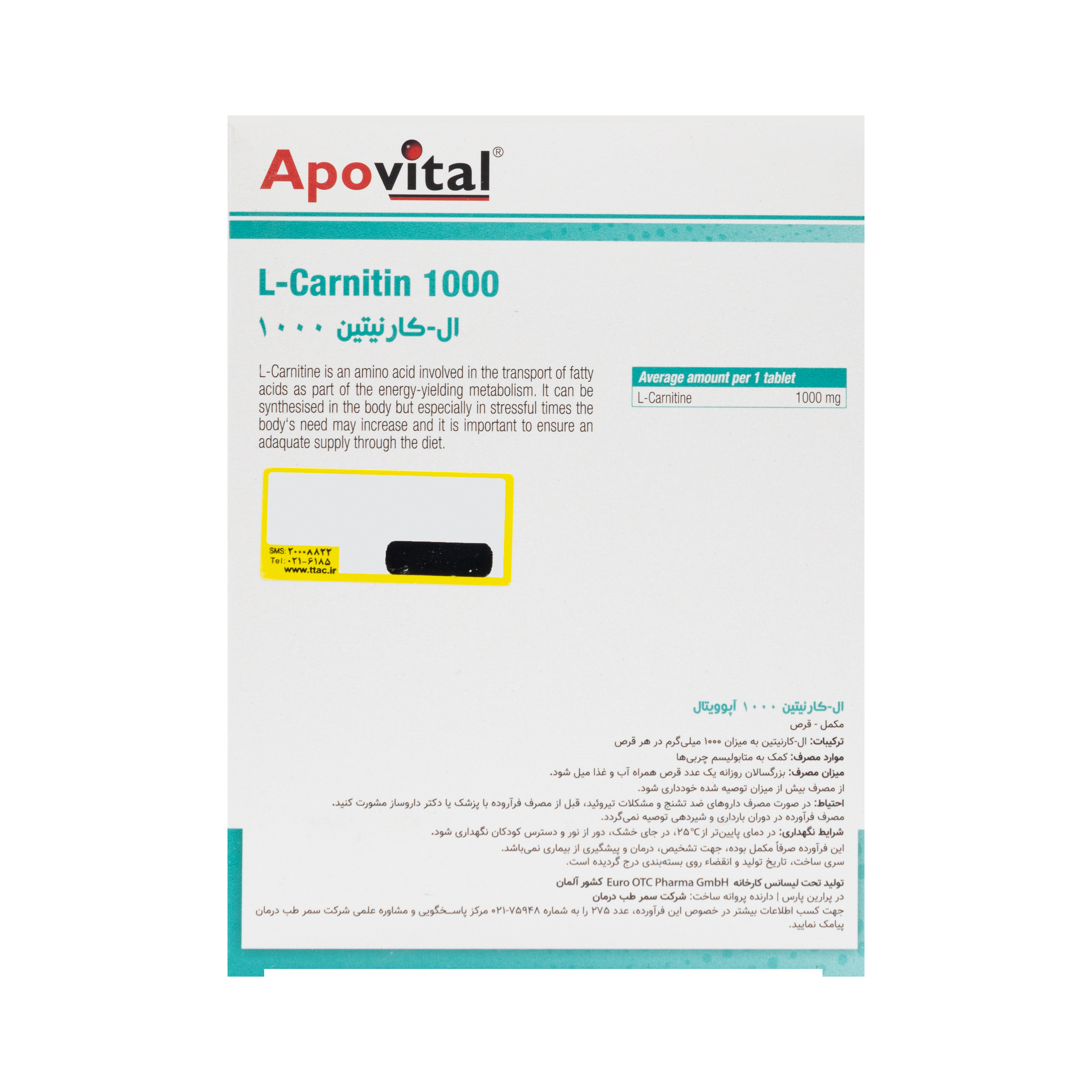قرص ال کارنیتین 1000 میلی گرم آپوویتال