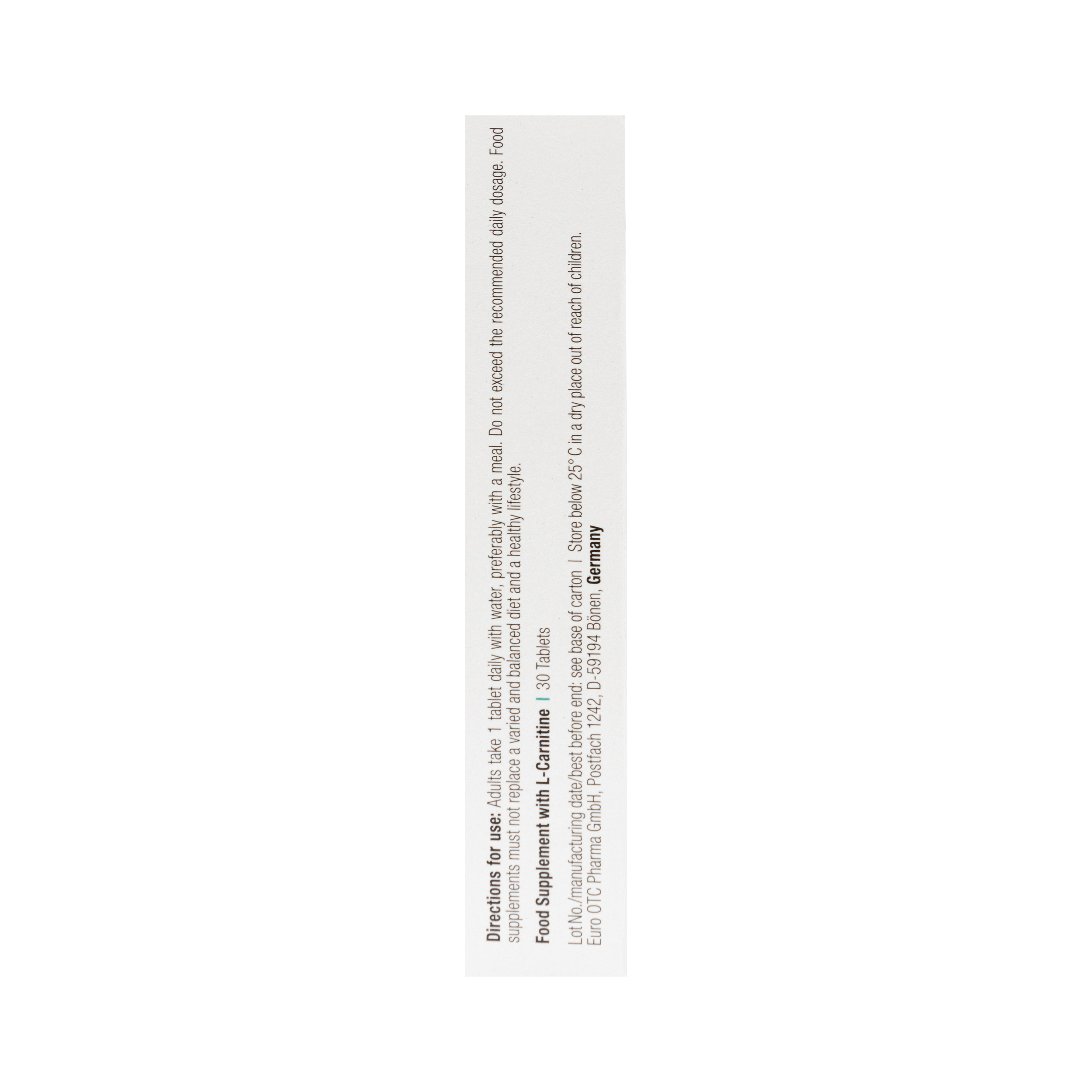 Ingredients: L-Carnitine tartrate; bulking agent: microcrystalline cellulose; glazing agent: sodium carboxy methyl cellulose; anti-caking